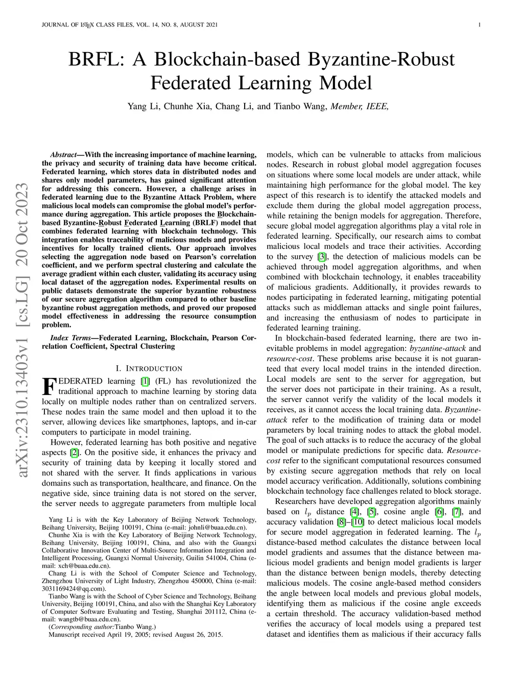 BRFL: A Blockchain-based Byzantine-Robust Federated Learning Model