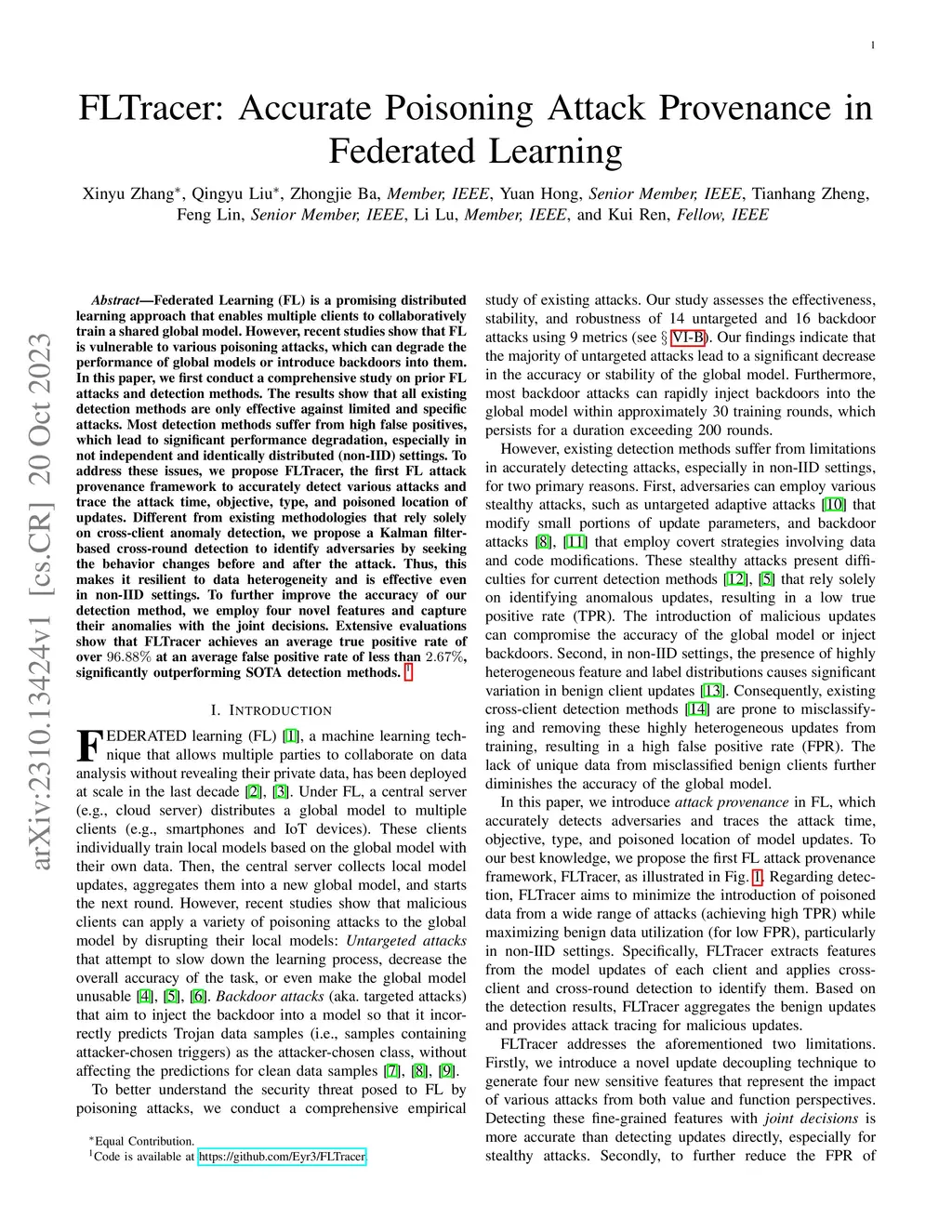 Federated Learning (FL) is a promising distributed learning approach that enables multiple clients to collaboratively train a shared global model. However, recent studies show that FL is vulnerable to various poisoning attacks, which can degrade the performance of global models or introduce backdoors into them. In this paper, we first conduct a comprehensive study on prior FL attacks and detection methods. The results show that all existing detection methods are only effective against limited and specific attacks. Most detection methods suffer from high false positives, which lead to significant performance degradation, especially in not independent and identically distributed (non-IID) settings. To address these issues, we propose FLTracer, the first FL attack provenance framework to accurately detect various attacks and trace the attack time, objective, type, and poisoned location of updates. Different from existing methodologies that rely solely on cross-client anomaly detection, we propose a Kalman filter-based cross-round detection to identify adversaries by seeking the behavior changes before and after the attack. Thus, this makes it resilient to data heterogeneity and is effective even in non-IID settings. To further improve the accuracy of our detection method, we employ four novel features and capture their anomalies with the joint decisions. Extensive evaluations show that FLTracer achieves an average true positive rate of over at an average false positive rate of less than , significantly outperforming SOTA detection methods. \footnote{Code is available at \url{https://github.com/Eyr3/FLTracer}.}