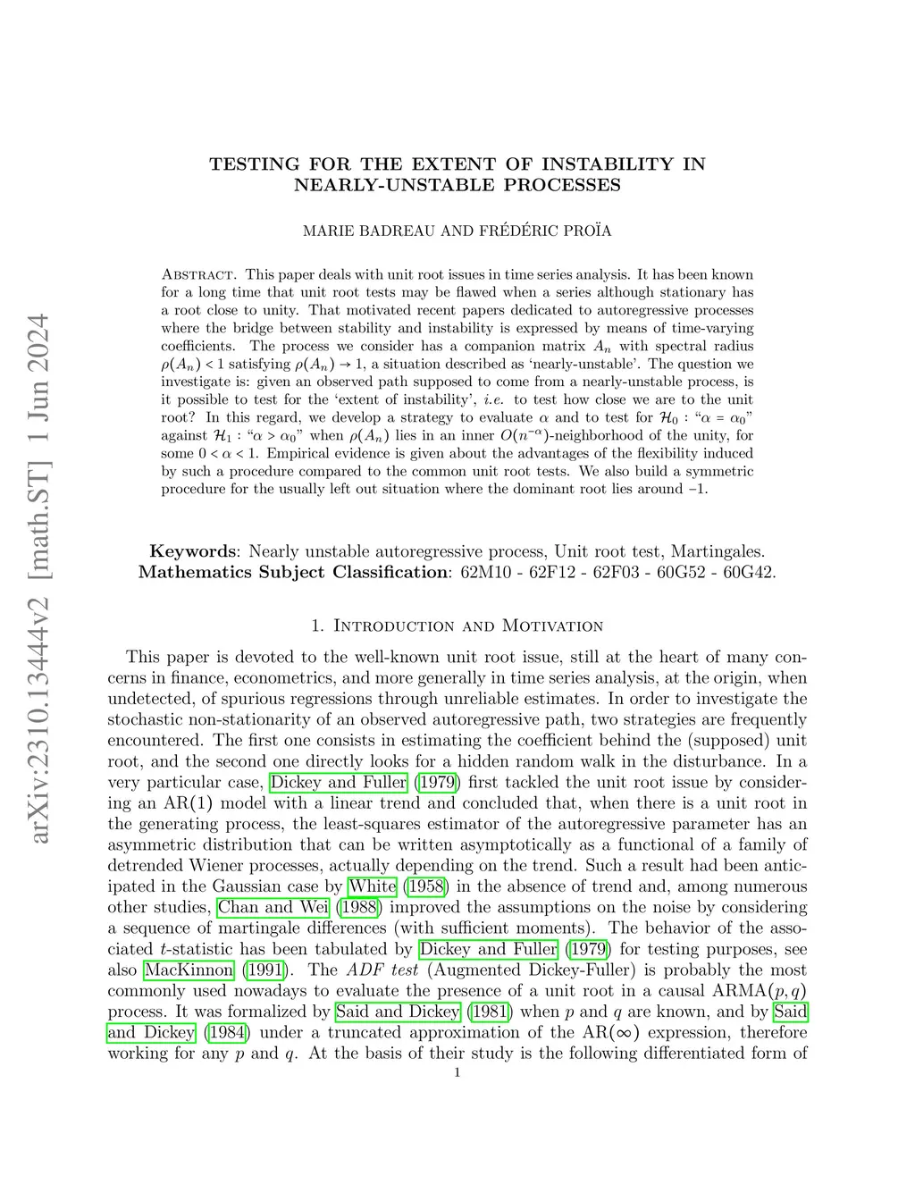 This paper deals with unit root issues in time series analysis. It has been known for a long time that unit root tests may be flawed when a series although stationary has a root close to unity. That motivated recent papers dedicated to autoregressive processes where the bridge between stability and instability is expressed by means of time-varying coefficients. The process we consider has a companion matrix with spectral radius satisfying , a situation described as `nearly-unstable'. The question we investigate is: given an observed path supposed to come from a nearly-unstable process, is it possible to test for the `extent of instability', i.e. to test how close we are to the unit root? In this regard, we develop a strategy to evaluate and to test for against when lies in an inner -neighborhood of the unity, for some . Empirical evidence is given about the advantages of the flexibility induced by such a procedure compared to the common unit root tests. We also build a symmetric procedure for the usually left out situation where the dominant root lies around .