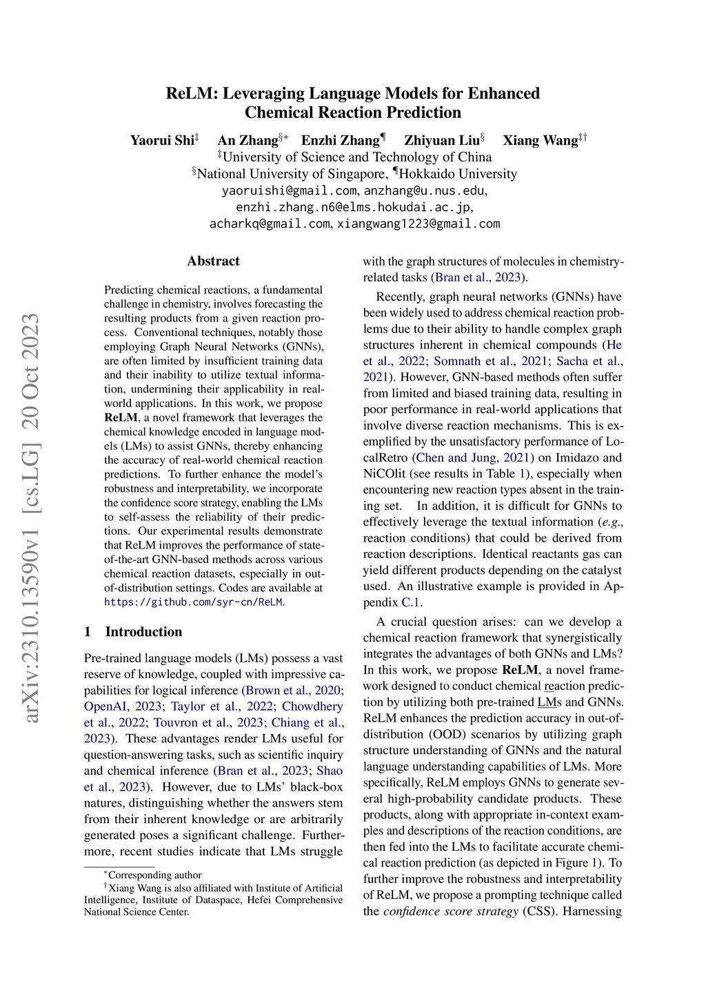 ReLM: Leveraging Language Models for Enhanced Chemical Reaction