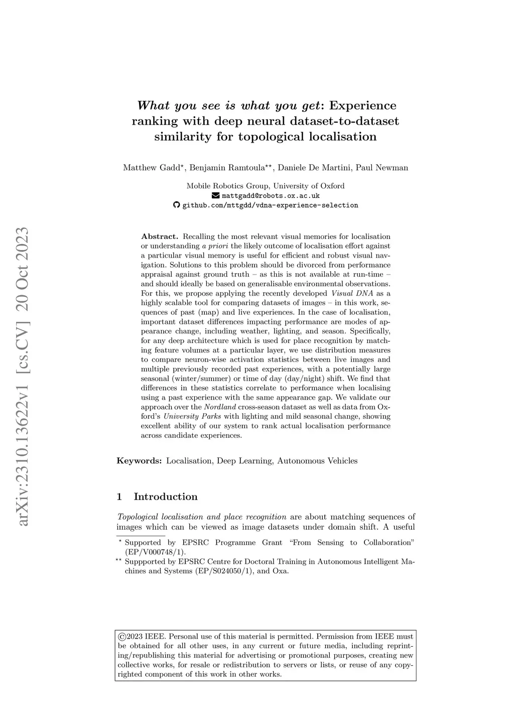 dataset-to-dataset similarity for topological localisation