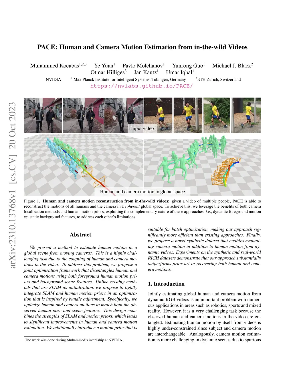 PACE: Human and Camera Motion Estimation from in-the-wild Videos