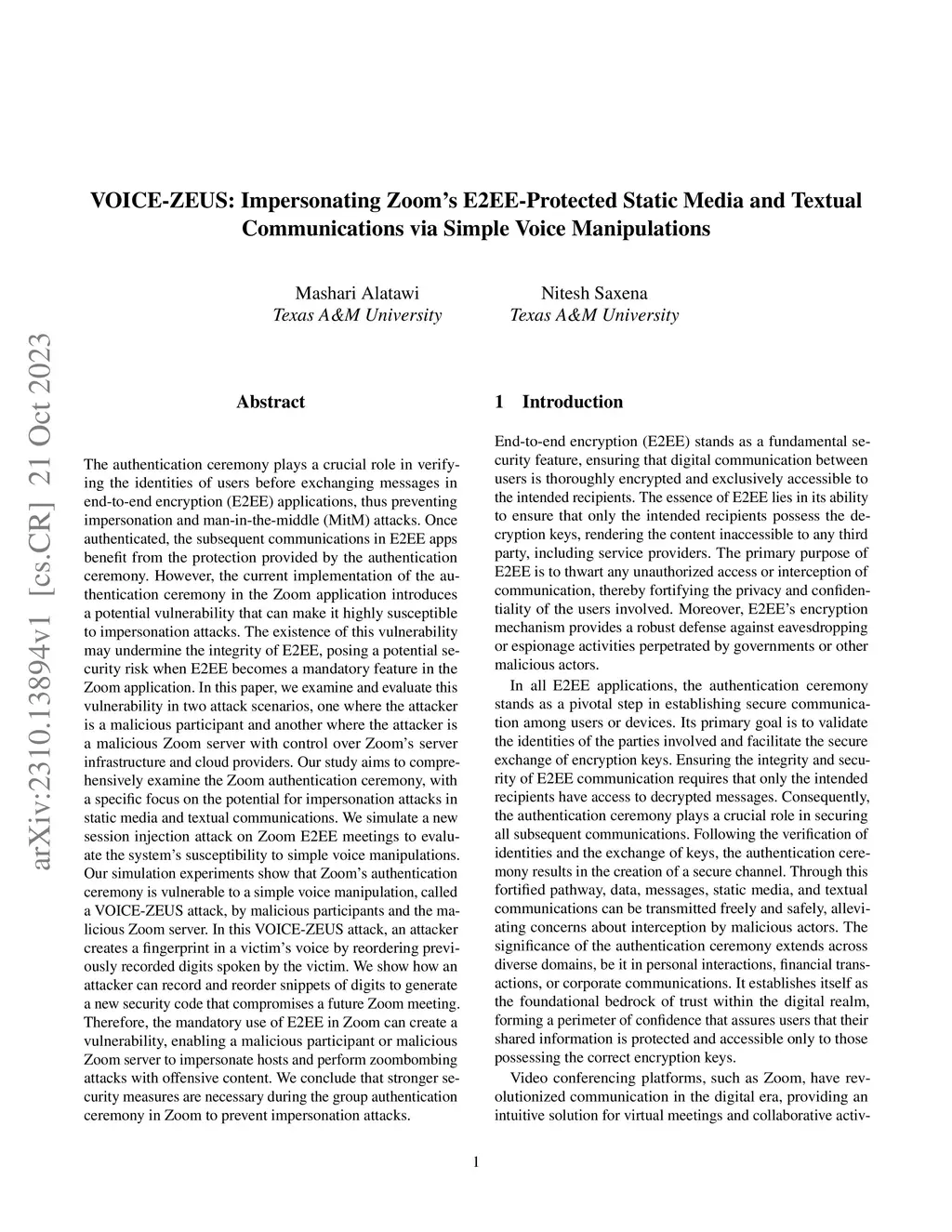 VOICE-ZEUS: Impersonating Zoom's E2EE-Protected Static Media and Textual