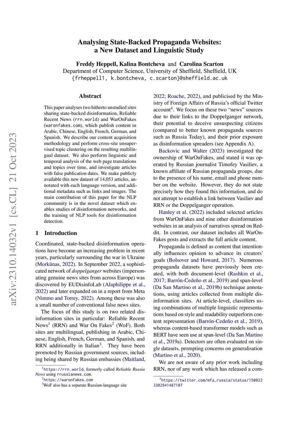 Analysing State-Backed Propaganda Websites: a New Dataset and Linguistic
