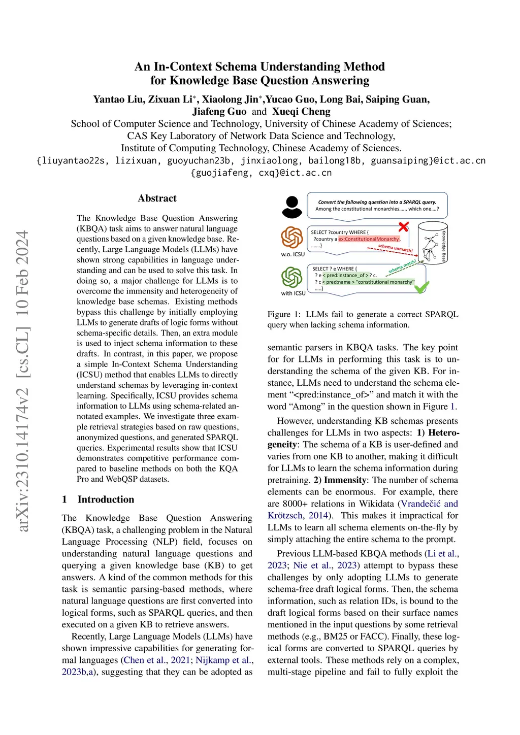 An In-Context Schema Understanding Method for Knowledge Base Question