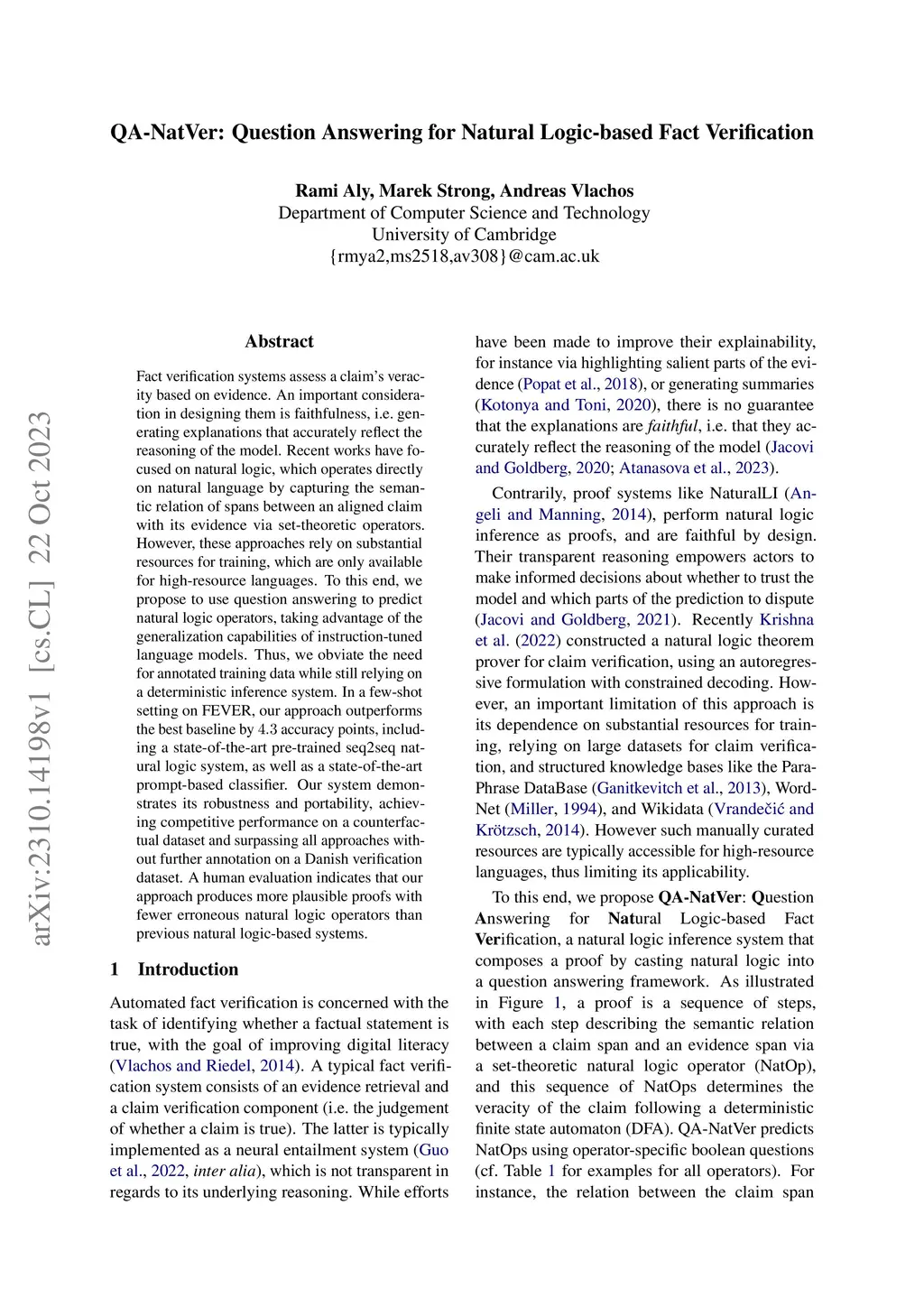 Fact verification systems assess a claim's veracity based on evidence. An important consideration in designing them is faithfulness, i.e. generating explanations that accurately reflect the reasoning of the model. Recent works have focused on natural logic, which operates directly on natural language by capturing the semantic relation of spans between an aligned claim with its evidence via set-theoretic operators. However, these approaches rely on substantial resources for training, which are only available for high-resource languages. To this end, we propose to use question answering to predict natural logic operators, taking advantage of the generalization capabilities of instruction-tuned language models. Thus, we obviate the need for annotated training data while still relying on a deterministic inference system. In a few-shot setting on FEVER, our approach outperforms the best baseline by accuracy points, including a state-of-the-art pre-trained seq2seq natural logic system, as well as a state-of-the-art prompt-based classifier. Our system demonstrates its robustness and portability, achieving competitive performance on a counterfactual dataset and surpassing all approaches without further annotation on a Danish verification dataset. A human evaluation indicates that our approach produces more plausible proofs with fewer erroneous natural logic operators than previous natural logic-based systems.