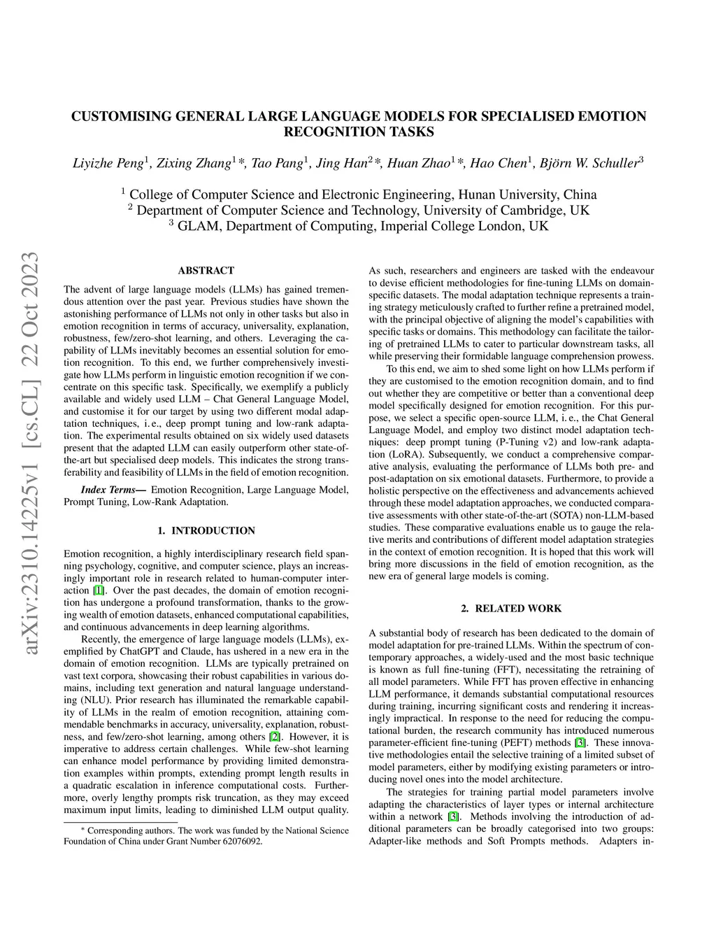 The advent of large language models (LLMs) has gained tremendous attention over the past year. Previous studies have shown the astonishing performance of LLMs not only in other tasks but also in emotion recognition in terms of accuracy, universality, explanation, robustness, few/zero-shot learning, and others. Leveraging the capability of LLMs inevitably becomes an essential solution for emotion recognition. To this end, we further comprehensively investigate how LLMs perform in linguistic emotion recognition if we concentrate on this specific task. Specifically, we exemplify a publicly available and widely used LLM -- Chat General Language Model, and customise it for our target by using two different modal adaptation techniques, i.e., deep prompt tuning and low-rank adaptation. The experimental results obtained on six widely used datasets present that the adapted LLM can easily outperform other state-of-the-art but specialised deep models. This indicates the strong transferability and feasibility of LLMs in the field of emotion recognition.