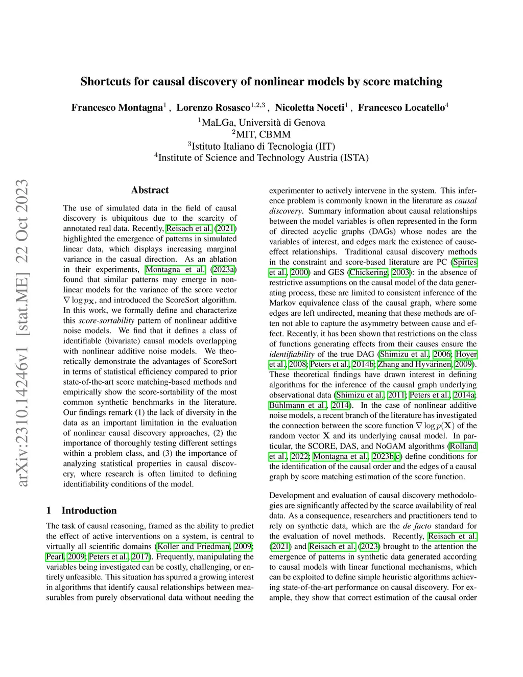 The use of simulated data in the field of causal discovery is ubiquitous due to the scarcity of annotated real data. Recently, Reisach et al., 2021 highlighted the emergence of patterns in simulated linear data, which displays increasing marginal variance in the casual direction. As an ablation in their experiments, Montagna et al., 2023 found that similar patterns may emerge in nonlinear models for the variance of the score vector , and introduced the ScoreSort algorithm. In this work, we formally define and characterize this score-sortability pattern of nonlinear additive noise models. We find that it defines a class of identifiable (bivariate) causal models overlapping with nonlinear additive noise models. We theoretically demonstrate the advantages of ScoreSort in terms of statistical efficiency compared to prior state-of-the-art score matching-based methods and empirically show the score-sortability of the most common synthetic benchmarks in the literature. Our findings remark (1) the lack of diversity in the data as an important limitation in the evaluation of nonlinear causal discovery approaches, (2) the importance of thoroughly testing different settings within a problem class, and (3) the importance of analyzing statistical properties in causal discovery, where research is often limited to defining identifiability conditions of the model.