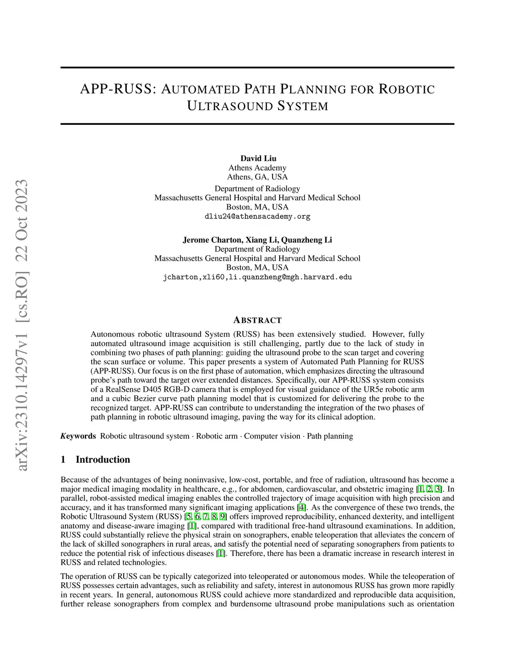 APP-RUSS: Automated Path Planning for Robotic Ultrasound System