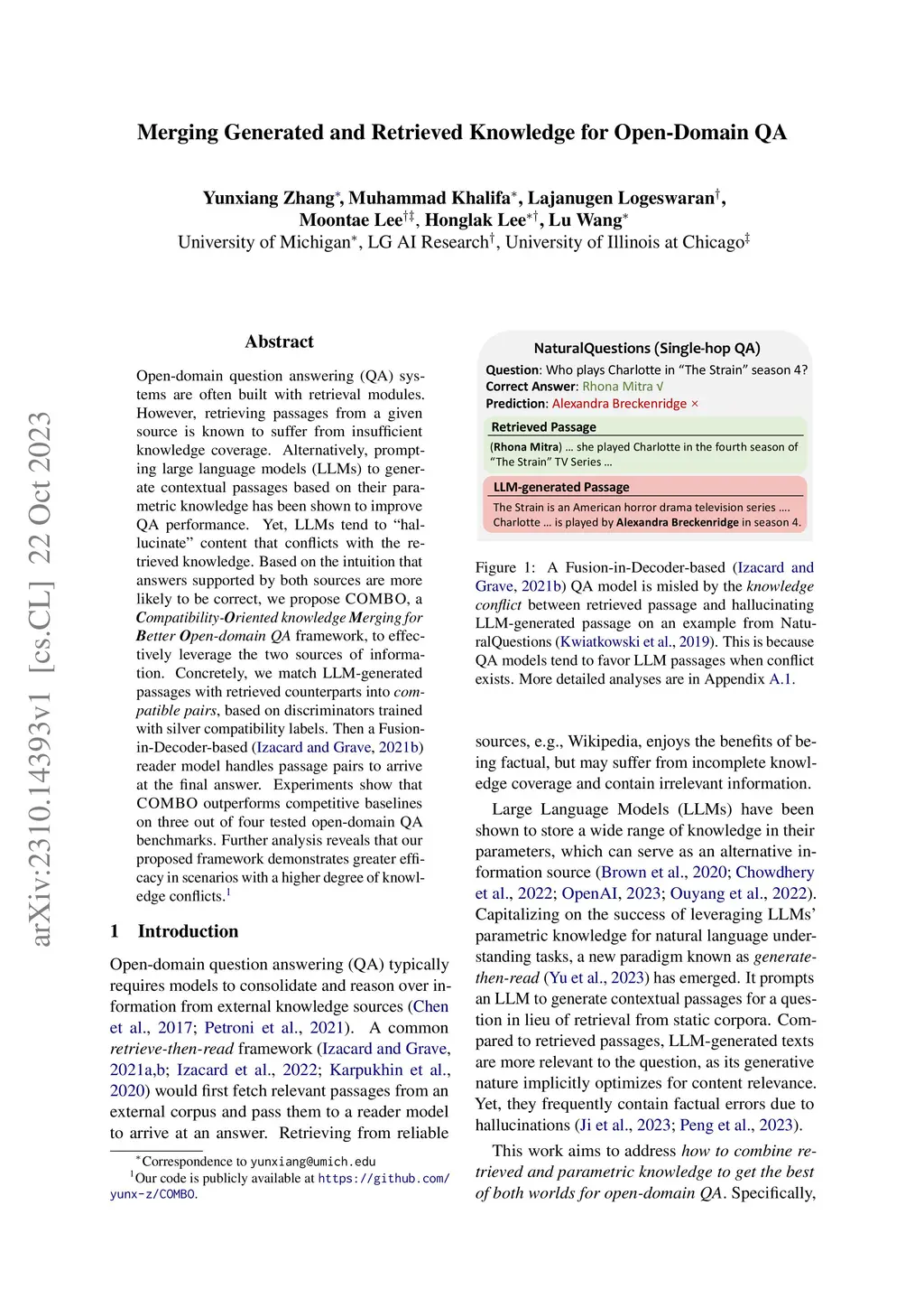Merging Generated and Retrieved Knowledge for Open-Domain QA