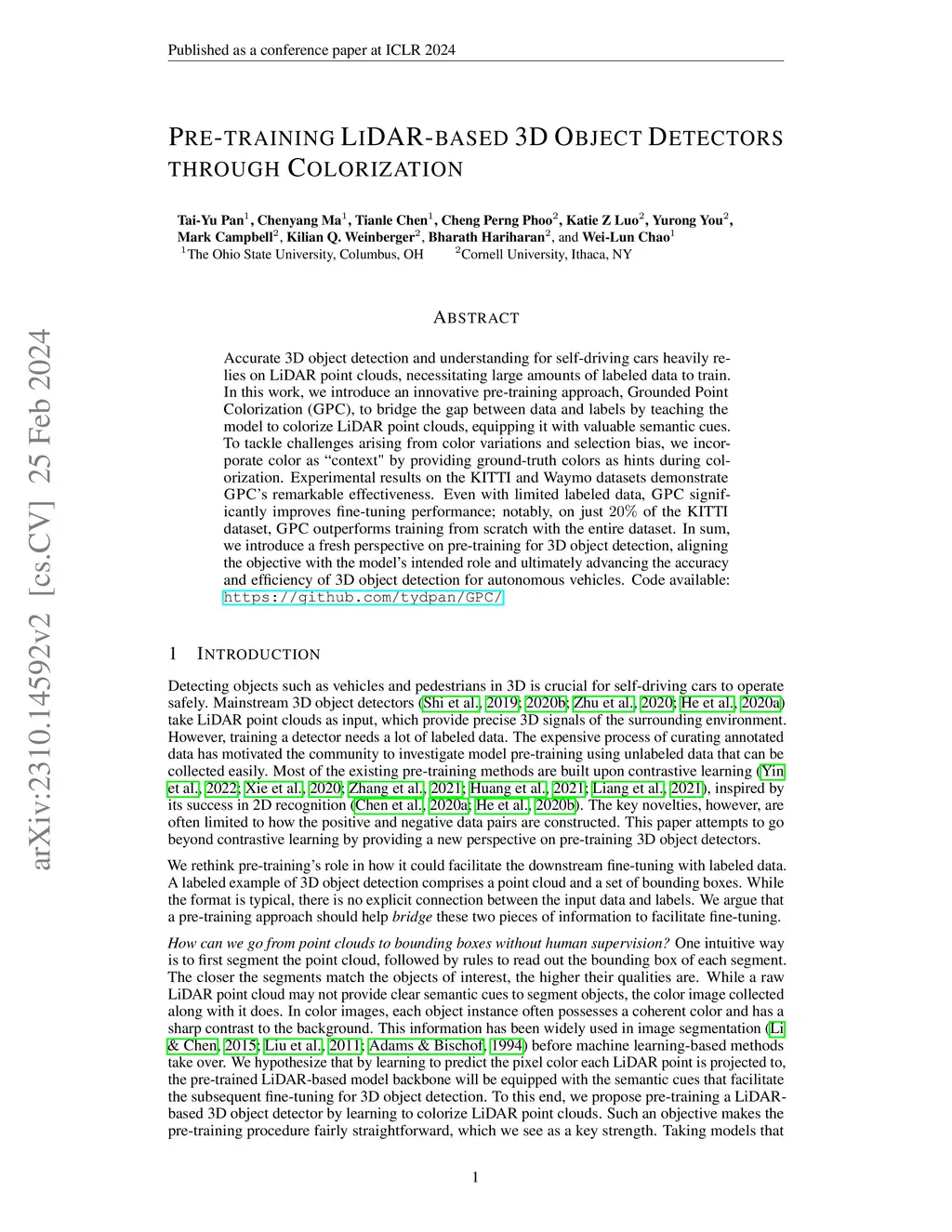 Pre-Training LiDAR-Based 3D Object Detectors Through Colorization