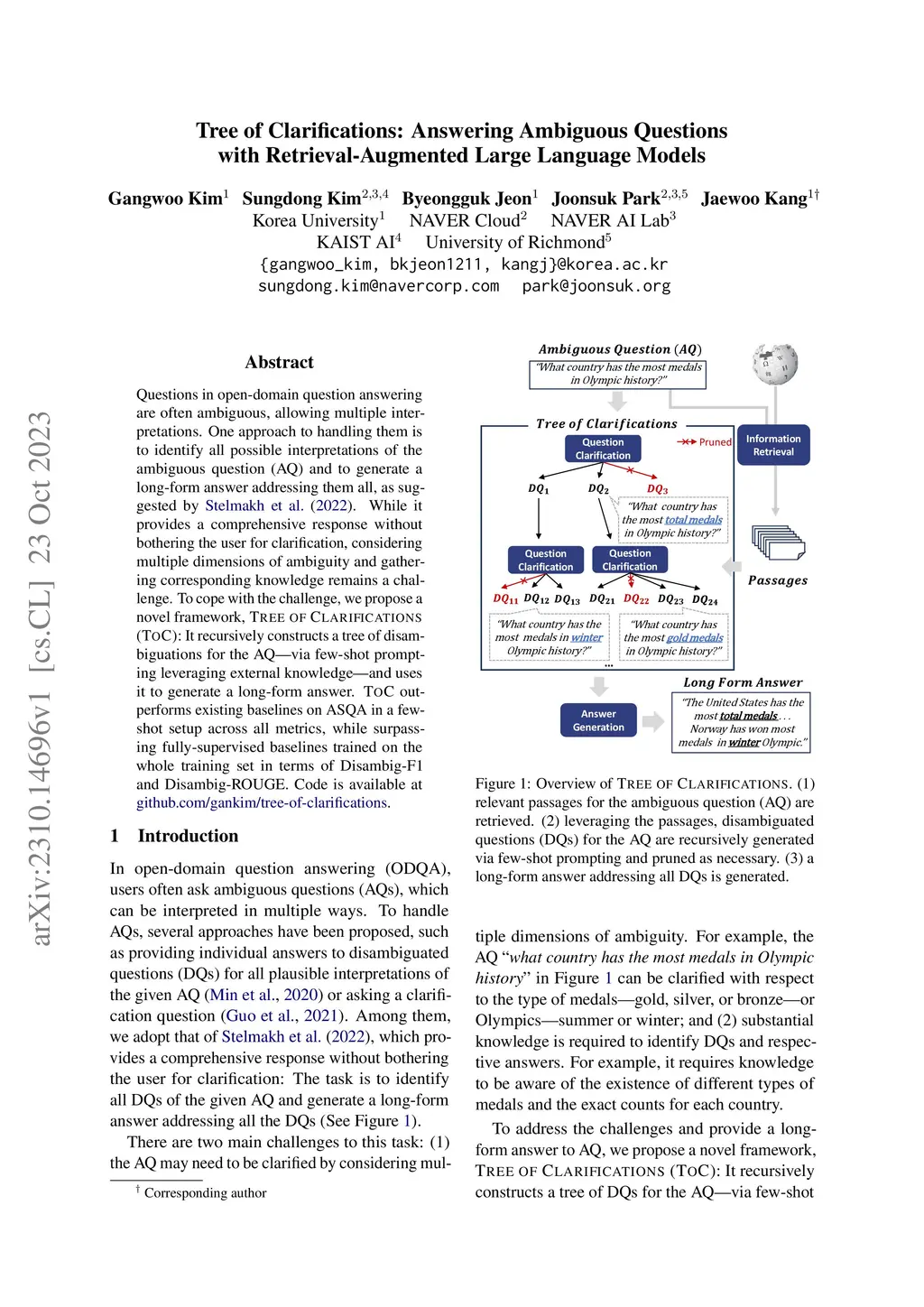Tree of Clarifications: Answering Ambiguous Questions with