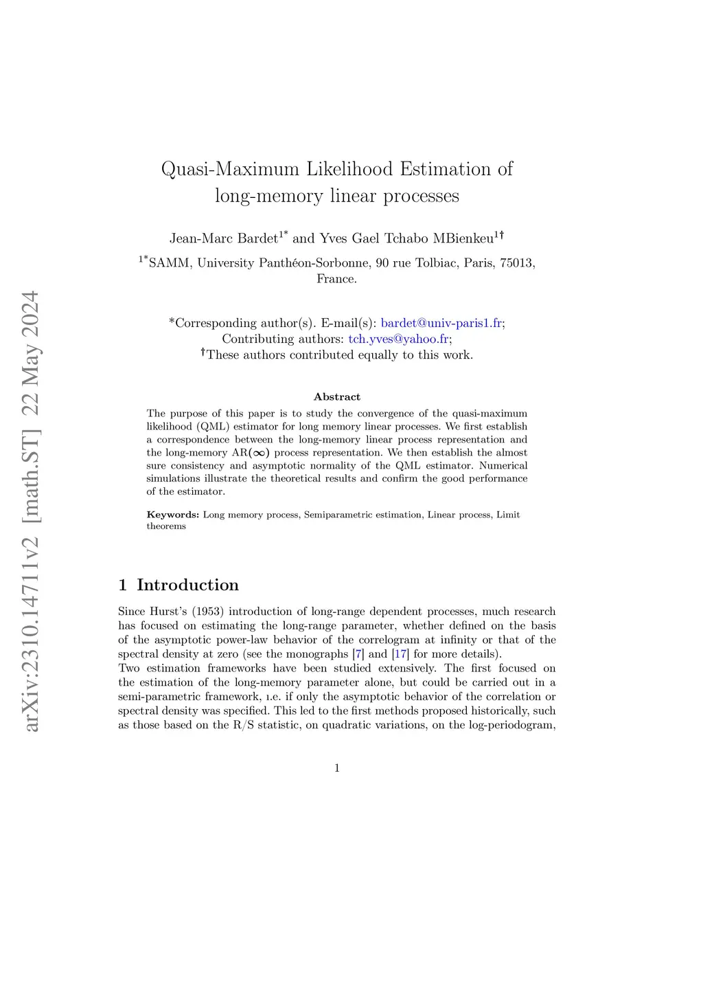 Statistical Inference for Stochastic Processes : An International Journal devoted to Time Series Analysis and the Statistics of Continuous Time Processes and Dynamical Systems (SISP), 2023