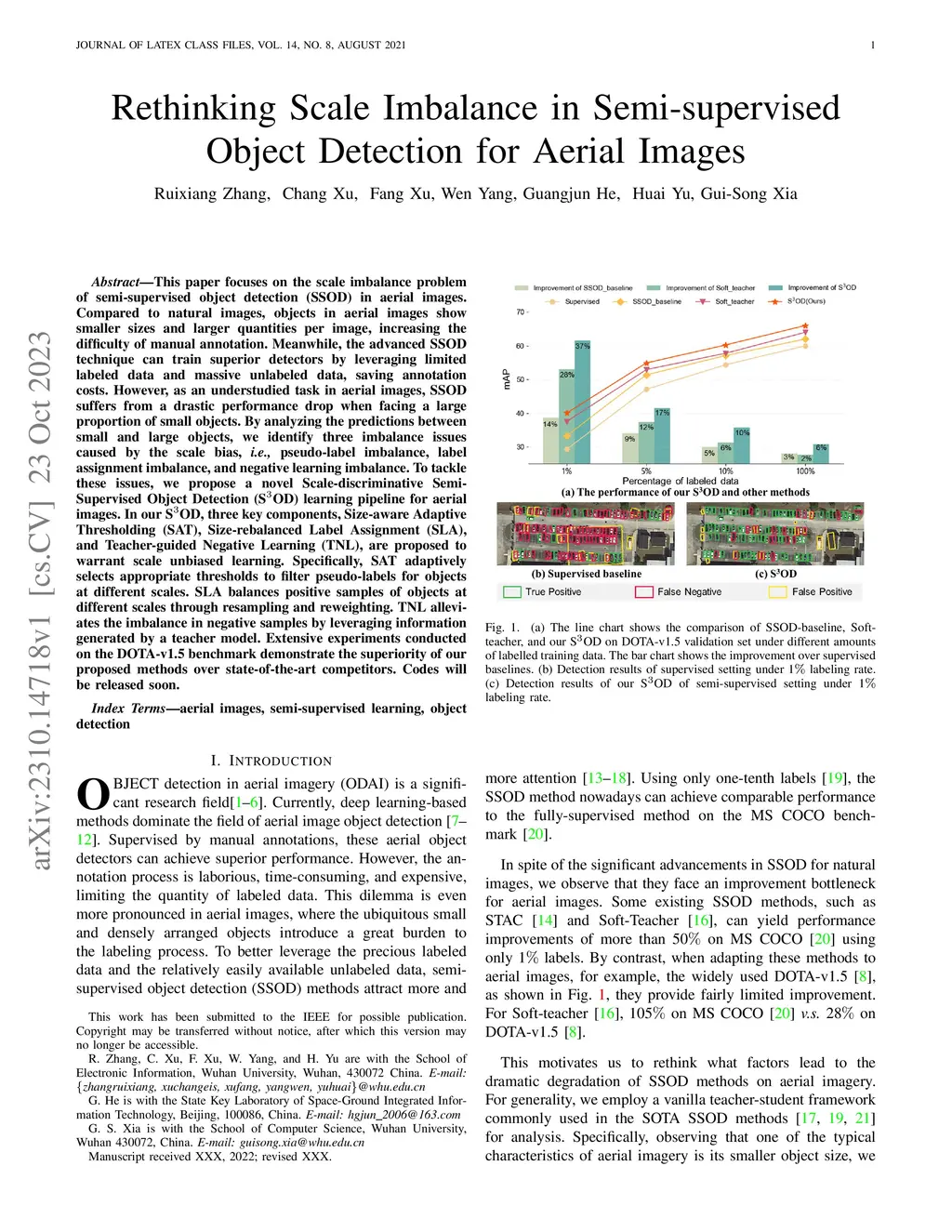 This paper focuses on the scale imbalance problem of semi-supervised object detection(SSOD) in aerial images. Compared to natural images, objects in aerial images show smaller sizes and larger quantities per image, increasing the difficulty of manual annotation. Meanwhile, the advanced SSOD technique can train superior detectors by leveraging limited labeled data and massive unlabeled data, saving annotation costs. However, as an understudied task in aerial images, SSOD suffers from a drastic performance drop when facing a large proportion of small objects. By analyzing the predictions between small and large objects, we identify three imbalance issues caused by the scale bias, i.e., pseudo-label imbalance, label assignment imbalance, and negative learning imbalance. To tackle these issues, we propose a novel Scale-discriminative Semi-Supervised Object Detection (S^3OD) learning pipeline for aerial images. In our S^3OD, three key components, Size-aware Adaptive Thresholding (SAT), Size-rebalanced Label Assignment (SLA), and Teacher-guided Negative Learning (TNL), are proposed to warrant scale unbiased learning. Specifically, SAT adaptively selects appropriate thresholds to filter pseudo-labels for objects at different scales. SLA balances positive samples of objects at different scales through resampling and reweighting. TNL alleviates the imbalance in negative samples by leveraging information generated by a teacher model. Extensive experiments conducted on the DOTA-v1.5 benchmark demonstrate the superiority of our proposed methods over state-of-the-art competitors. Codes will be released soon.