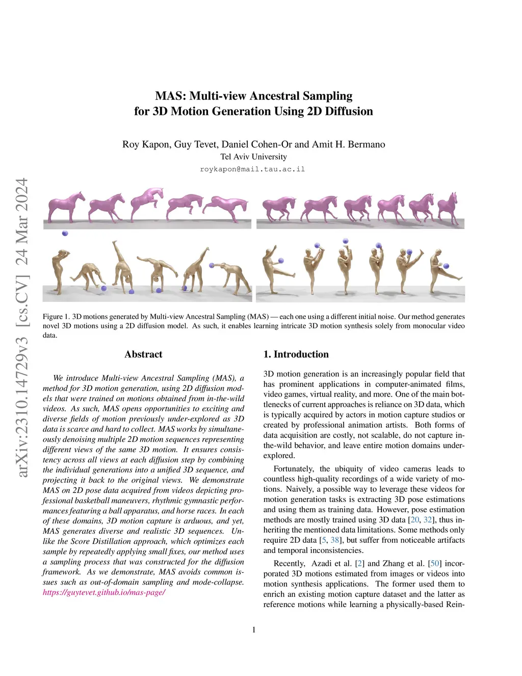 MAS: Multi-view Ancestral Sampling for 3D motion generation using 2D