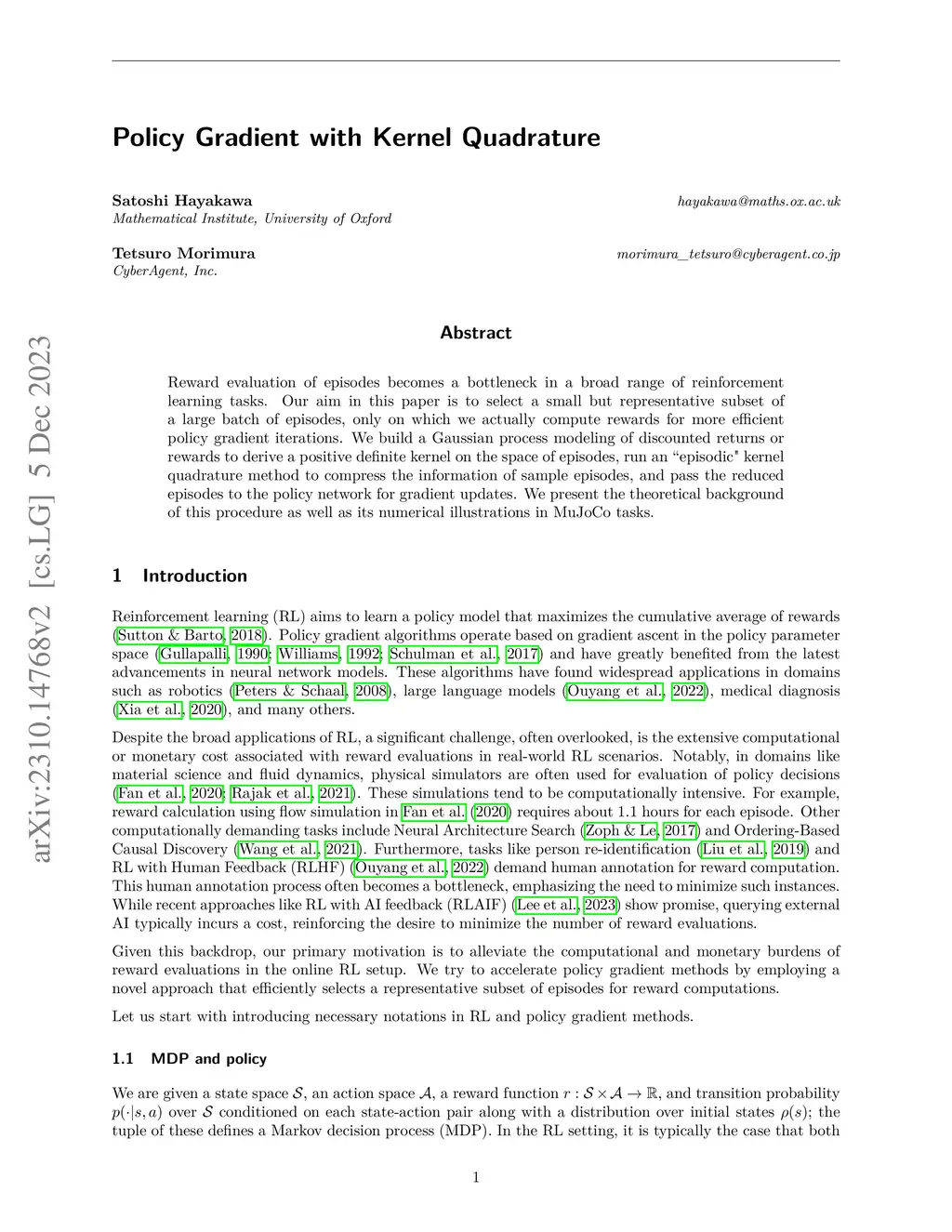 Policy Gradient with Kernel Quadrature