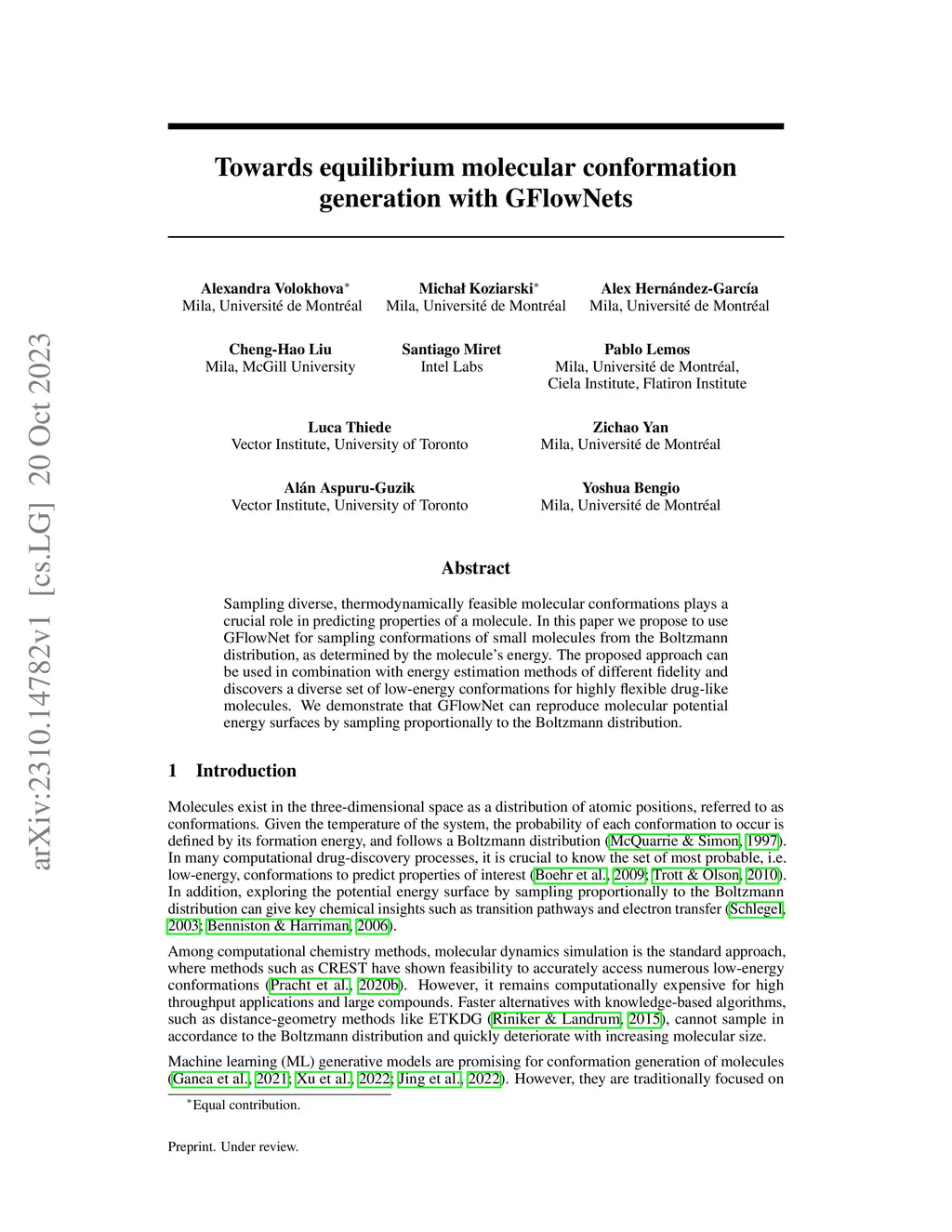 Sampling diverse, thermodynamically feasible molecular conformations plays a crucial role in predicting properties of a molecule. In this paper we propose to use GFlowNet for sampling conformations of small molecules from the Boltzmann distribution, as determined by the molecule's energy. The proposed approach can be used in combination with energy estimation methods of different fidelity and discovers a diverse set of low-energy conformations for highly flexible drug-like molecules. We demonstrate that GFlowNet can reproduce molecular potential energy surfaces by sampling proportionally to the Boltzmann distribution.
