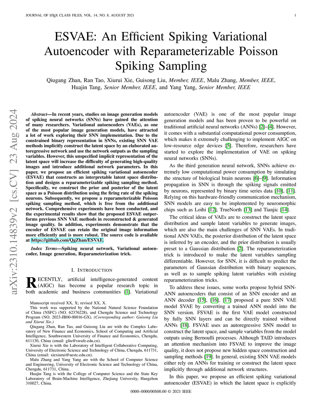 ESVAE: An Efficient Spiking Variational Autoencoder with