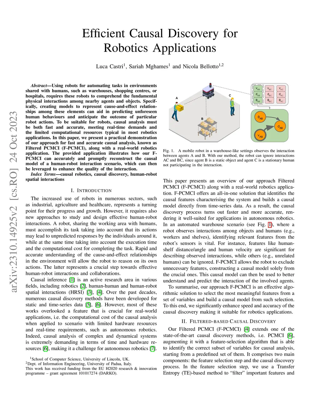 Using robots for automating tasks in environments shared with humans, such as warehouses, shopping centres, or hospitals, requires these robots to comprehend the fundamental physical interactions among nearby agents and objects. Specifically, creating models to represent cause-and-effect relationships among these elements can aid in predicting unforeseen human behaviours and anticipate the outcome of particular robot actions. To be suitable for robots, causal analysis must be both fast and accurate, meeting real-time demands and the limited computational resources typical in most robotics applications. In this paper, we present a practical demonstration of our approach for fast and accurate causal analysis, known as Filtered PCMCI (F-PCMCI), along with a real-world robotics application. The provided application illustrates how our F-PCMCI can accurately and promptly reconstruct the causal model of a human-robot interaction scenario, which can then be leveraged to enhance the quality of the interaction.