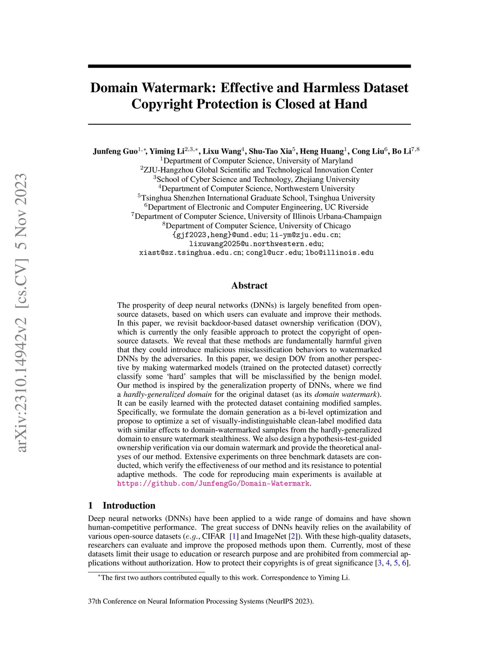 Domain Watermark: Effective and Harmless Dataset Copyright Protection is