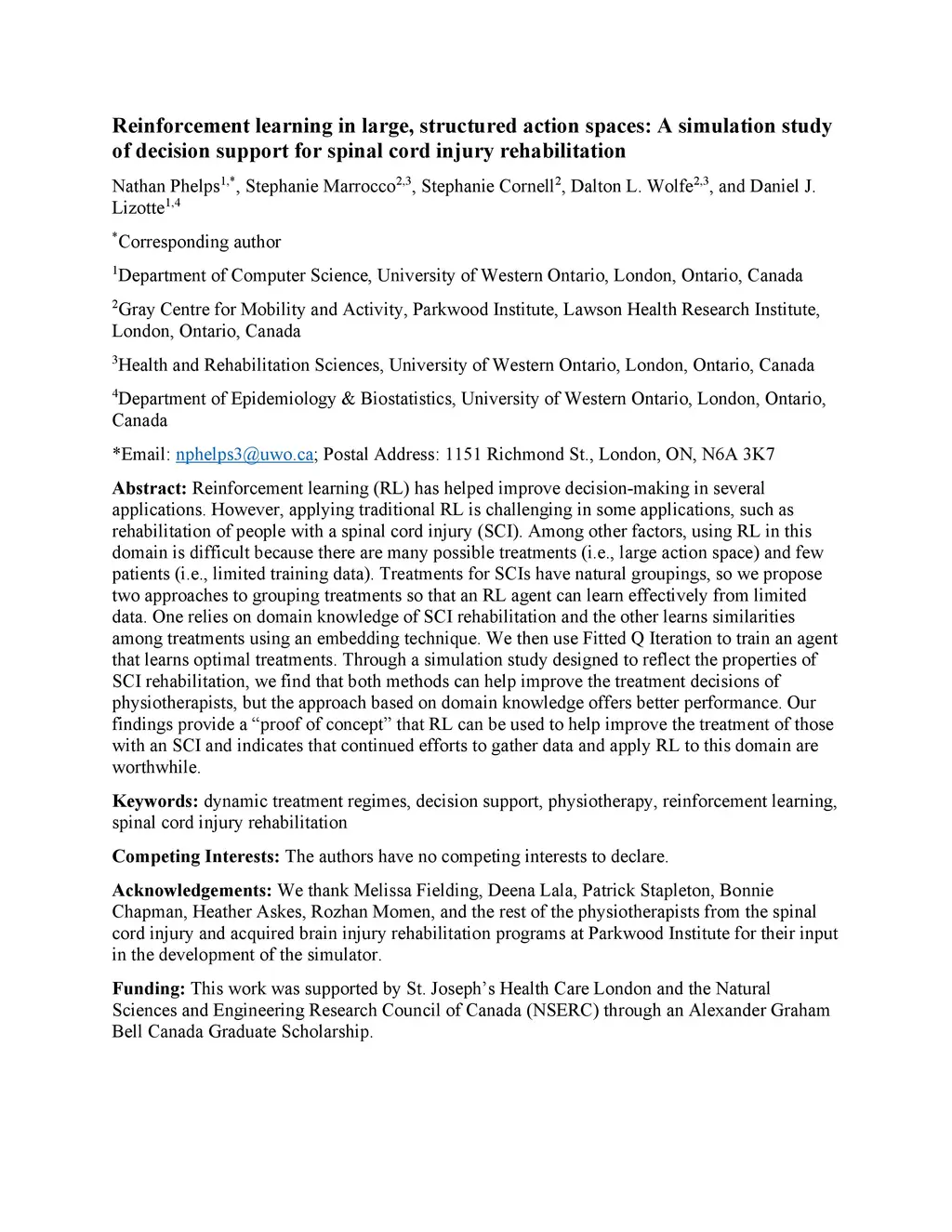 study of decision support for spinal cord injury rehabilitation