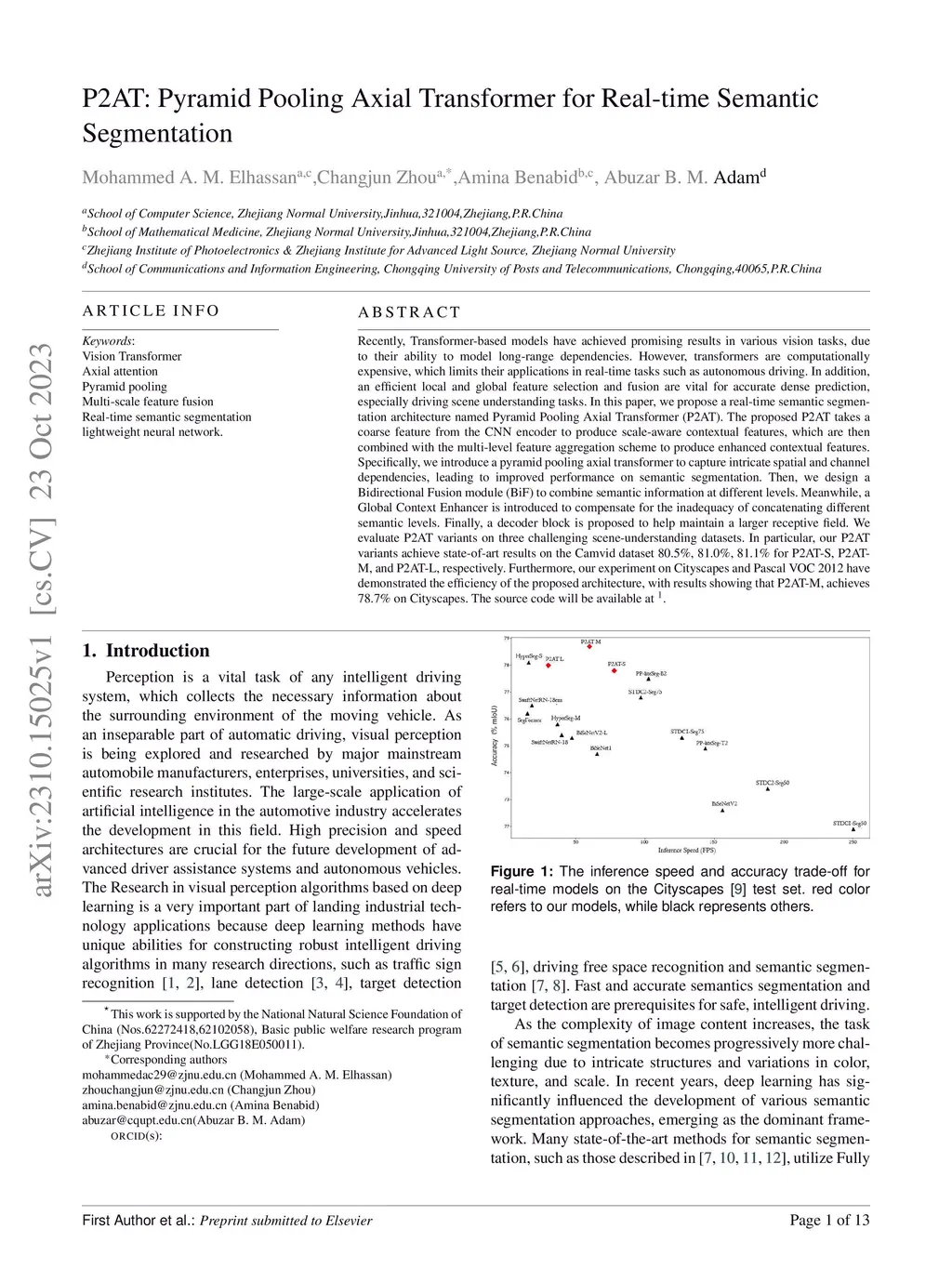 P2AT: Pyramid Pooling Axial Transformer for Real-time Semantic