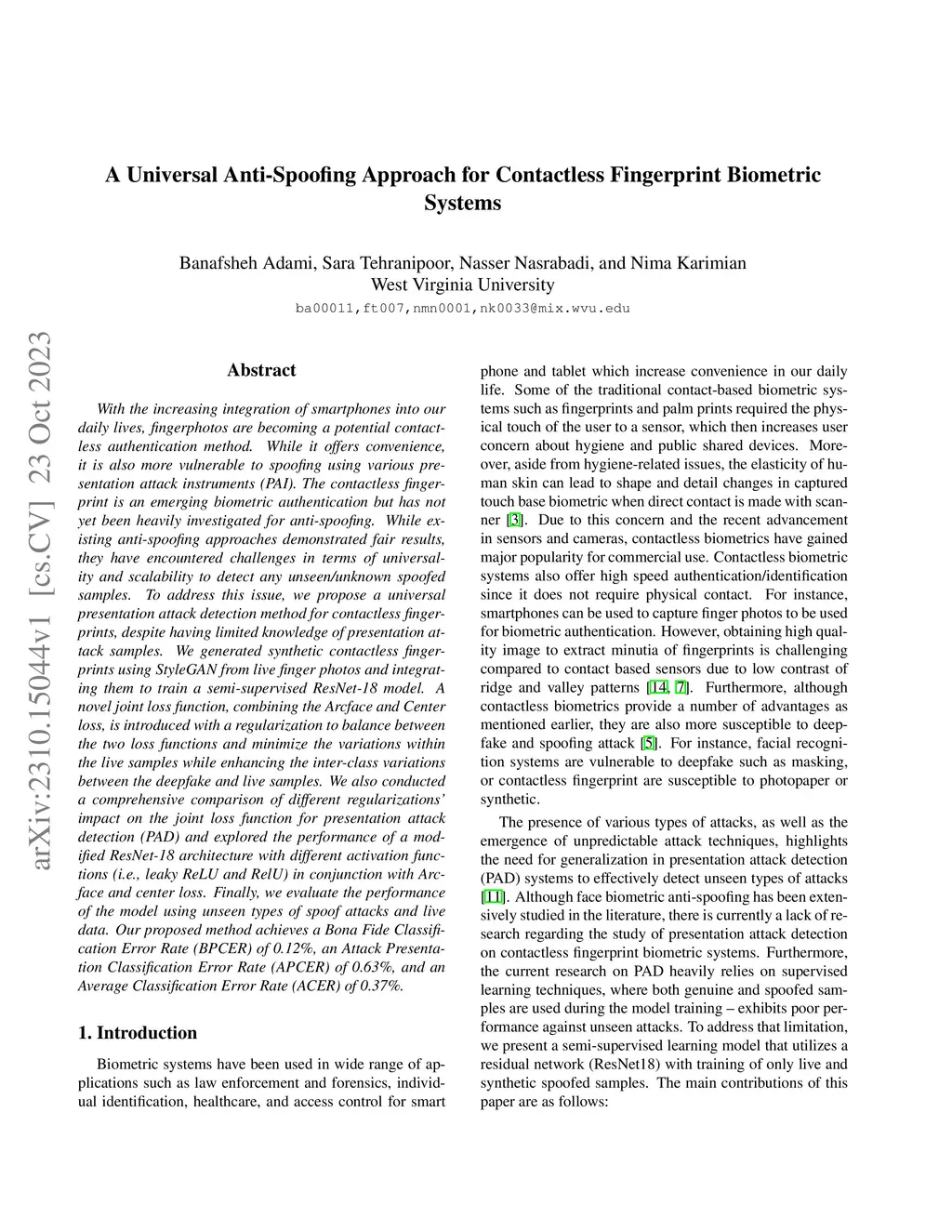 A Universal Anti-Spoofing Approach for Contactless Fingerprint Biometric