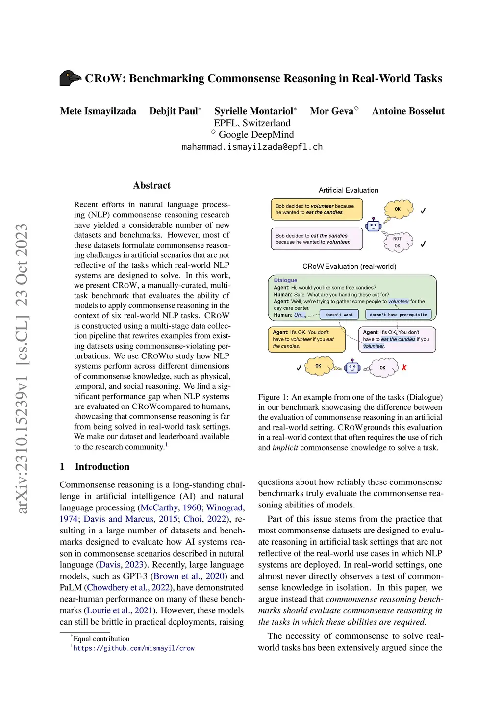 CRoW: Benchmarking Commonsense Reasoning in Real-World Tasks