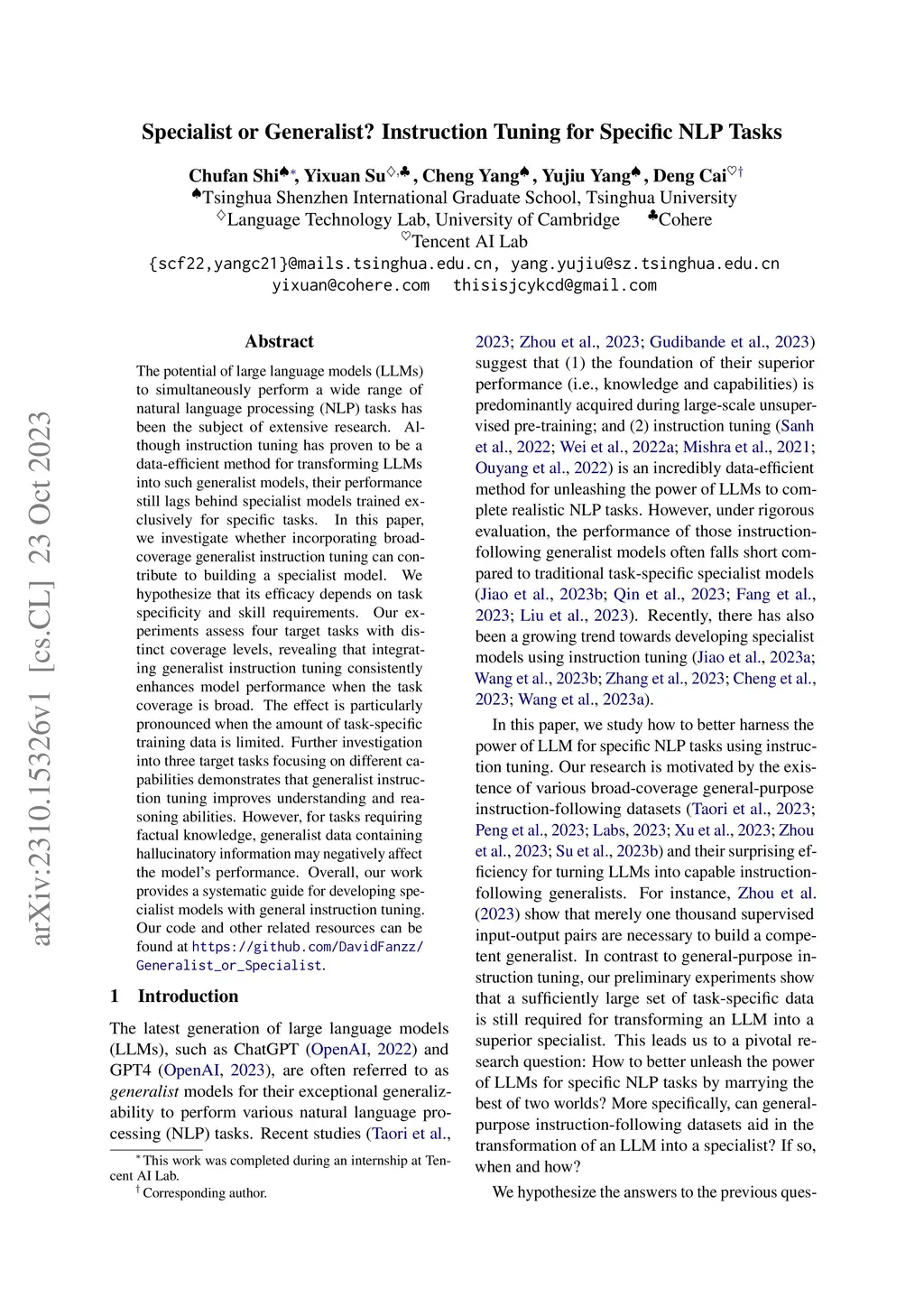 Specialist or Generalist? Instruction Tuning for Specific NLP Tasks