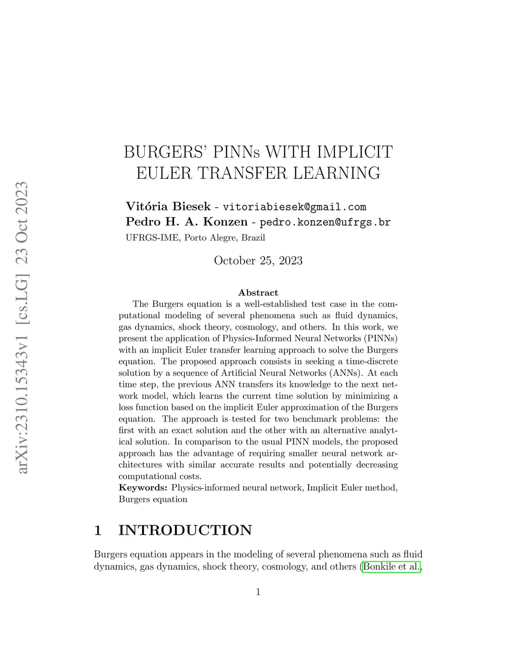 Burgers' pinns with implicit euler transfer learning