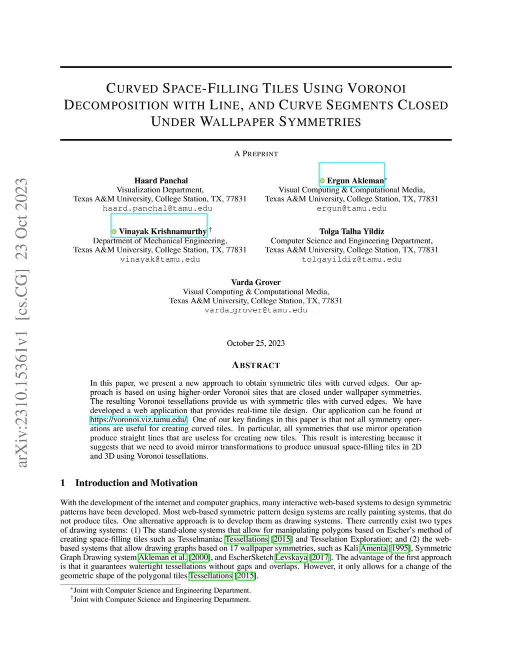 In this paper, we present a new approach to obtain symmetric tiles with curved edges. Our approach is based on using higher-order Voronoi sites that are closed under wallpaper symmetries. The resulting Voronoi tessellations provide us with symmetric tiles with curved edges. We have developed a web application that provides real-time tile design. Our application can be found at https://voronoi.viz.tamu.edu. One of our key findings in this paper is that not all symmetry operations are useful for creating curved tiles. In particular, all symmetries that use mirror operation produce straight lines that are useless for creating new tiles. This result is interesting because it suggests that we need to avoid mirror transformations to produce unusual space-filling tiles in 2D and 3D using Voronoi tessellations.