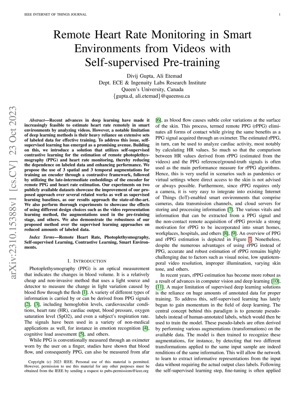 Remote Heart Rate Monitoring in Smart Environments from Videos with