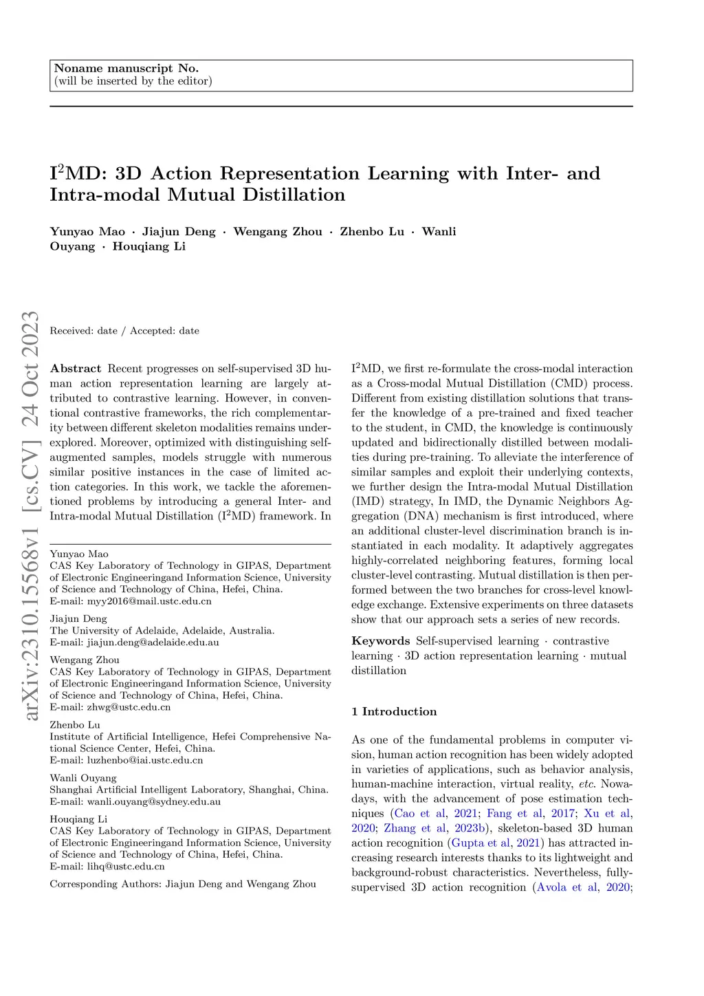 IMD: 3D Action Representation Learning with Inter- and Intra-modal