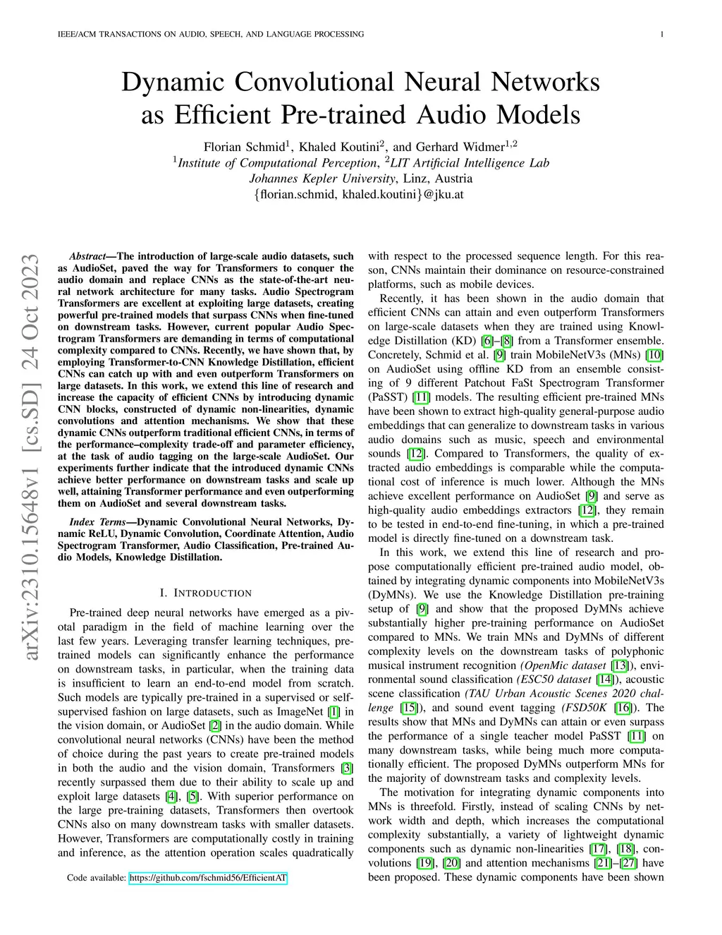 Dynamic Convolutional Neural Networks as Efficient Pre-trained Audio