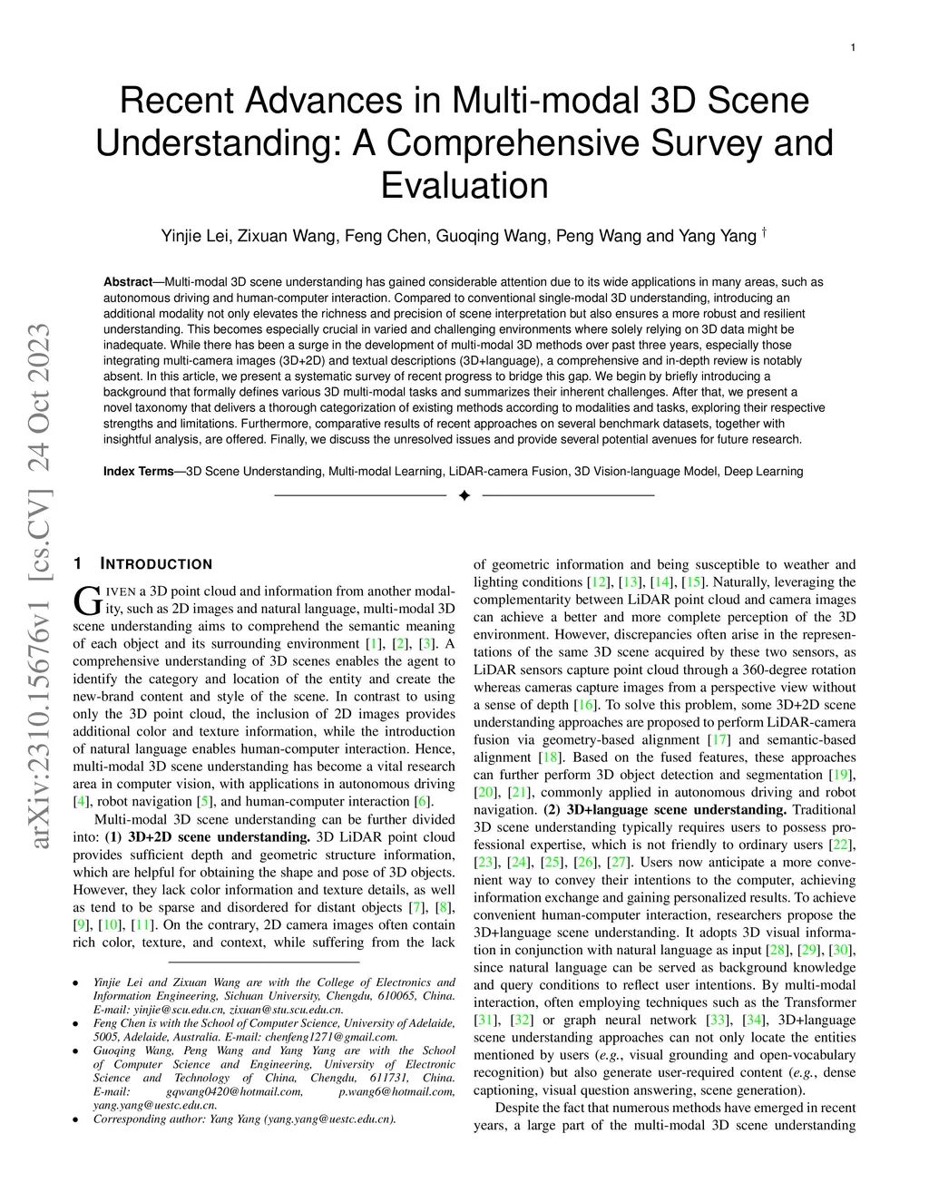 Recent Advances in Multi-modal 3D Scene Understanding: A Comprehensive