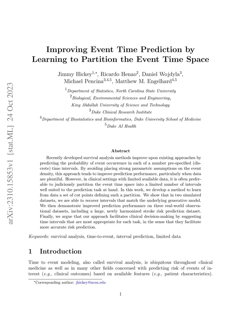 Recently developed survival analysis methods improve upon existing approaches by predicting the probability of event occurrence in each of a number pre-specified (discrete) time intervals. By avoiding placing strong parametric assumptions on the event density, this approach tends to improve prediction performance, particularly when data are plentiful. However, in clinical settings with limited available data, it is often preferable to judiciously partition the event time space into a limited number of intervals well suited to the prediction task at hand. In this work, we develop a method to learn from data a set of cut points defining such a partition. We show that in two simulated datasets, we are able to recover intervals that match the underlying generative model. We then demonstrate improved prediction performance on three real-world observational datasets, including a large, newly harmonized stroke risk prediction dataset. Finally, we argue that our approach facilitates clinical decision-making by suggesting time intervals that are most appropriate for each task, in the sense that they facilitate more accurate risk prediction.