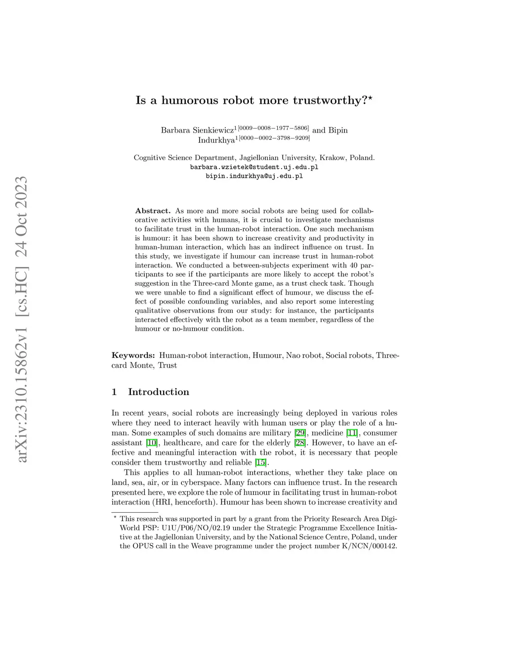 As more and more social robots are being used for collaborative activities with humans, it is crucial to investigate mechanisms to facilitate trust in the human-robot interaction. One such mechanism is humour: it has been shown to increase creativity and productivity in human-human interaction, which has an indirect influence on trust. In this study, we investigate if humour can increase trust in human-robot interaction. We conducted a between-subjects experiment with 40 participants to see if the participants are more likely to accept the robot's suggestion in the Three-card Monte game, as a trust check task. Though we were unable to find a significant effect of humour, we discuss the effect of possible confounding variables, and also report some interesting qualitative observations from our study: for instance, the participants interacted effectively with the robot as a team member, regardless of the humour or no-humour condition.