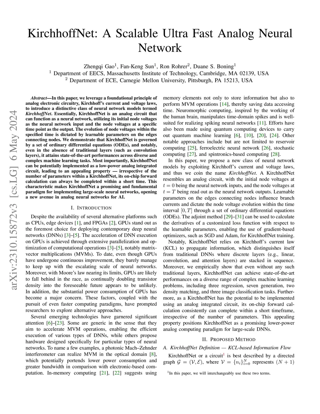 KirchhoffNet: A Scalable Ultra Fast Analog Neural Network