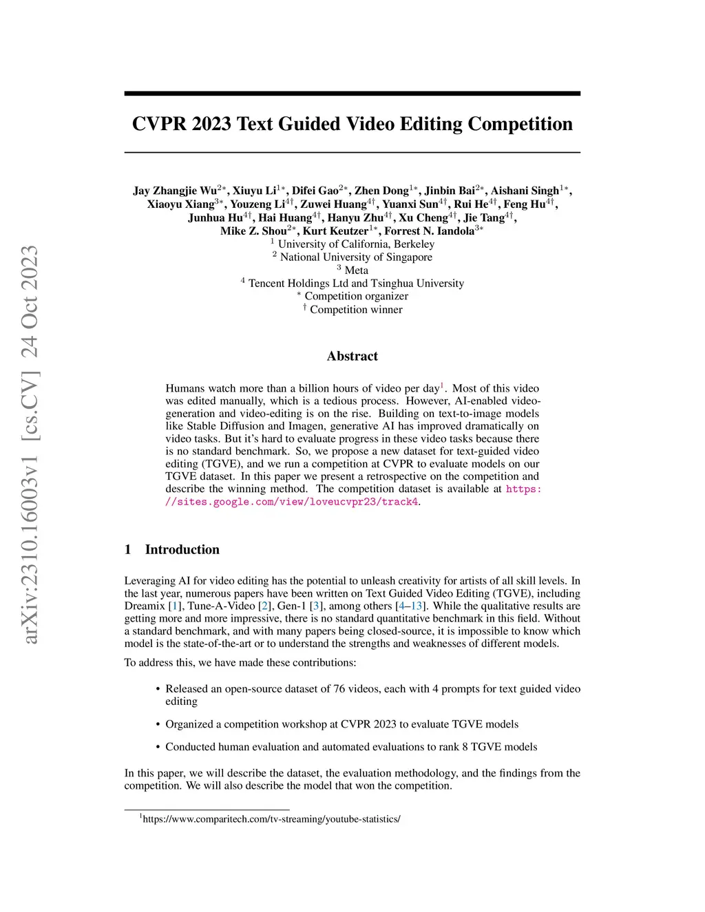 CVPR 2023 Text Guided Video Editing Competition