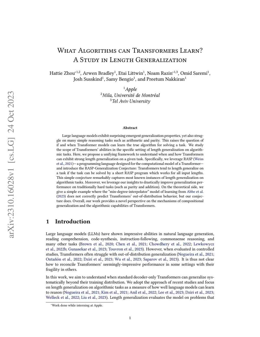 What Algorithms can Transformers Learn? A Study in Length Generalization