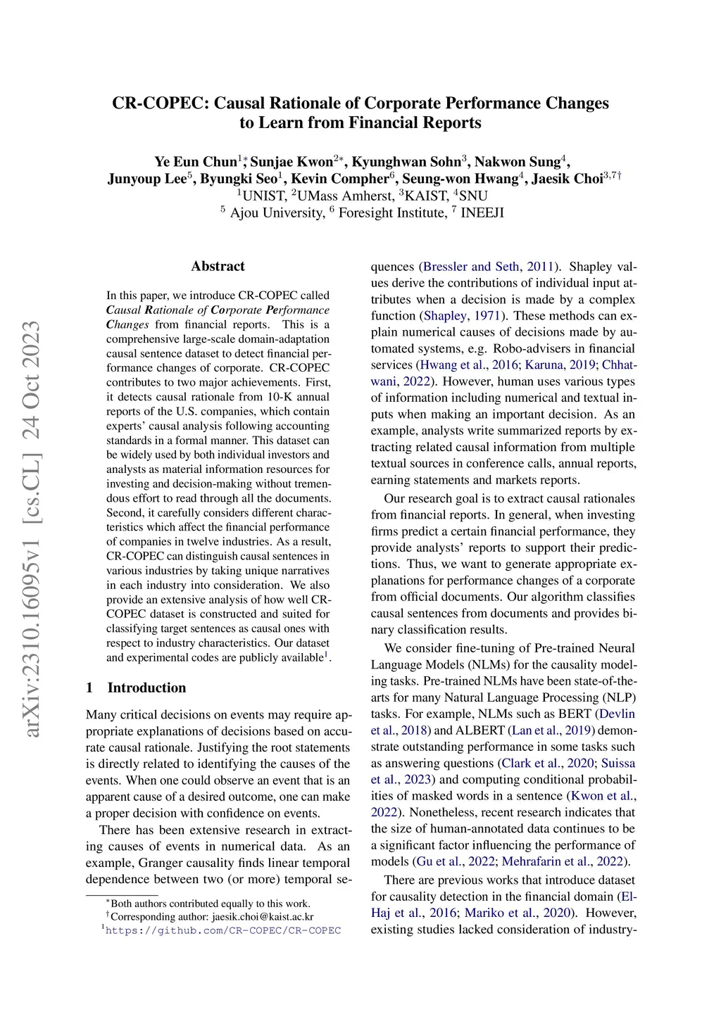 CR-COPEC: Causal Rationale of Corporate Performance Changes to Learn