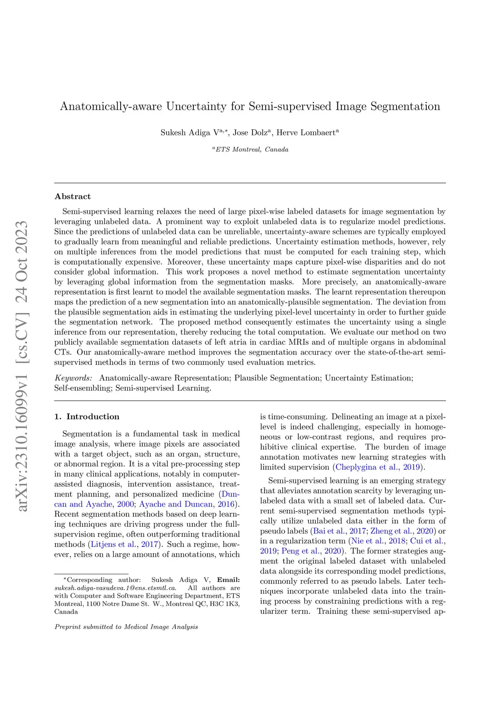 Anatomically-aware Uncertainty for Semi-supervised Image Segmentation