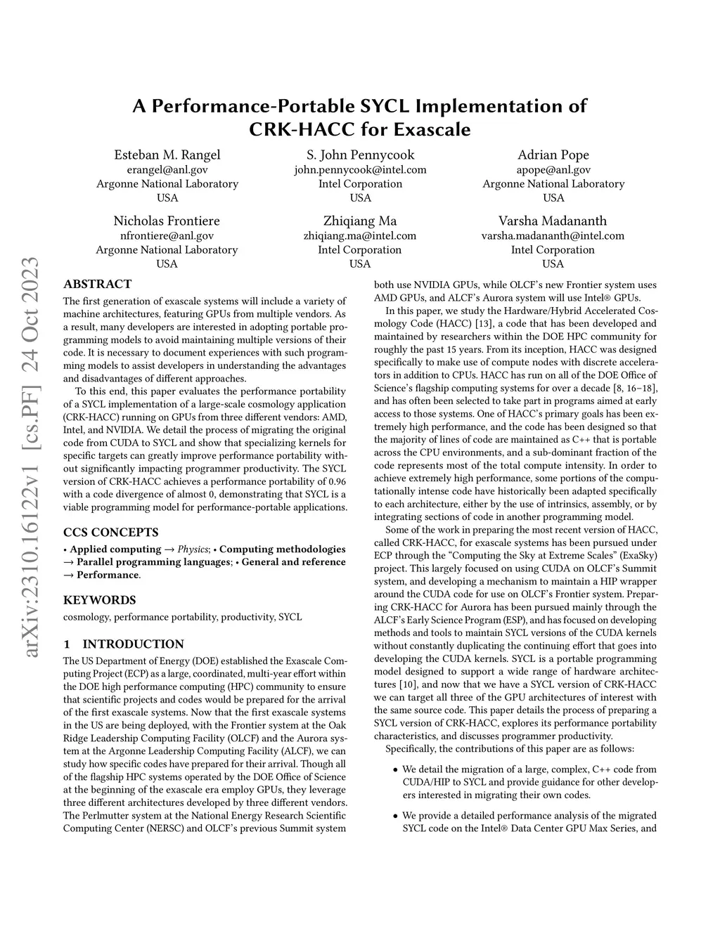 A Performance-Portable SYCL Implementation of CRK-HACC for Exascale