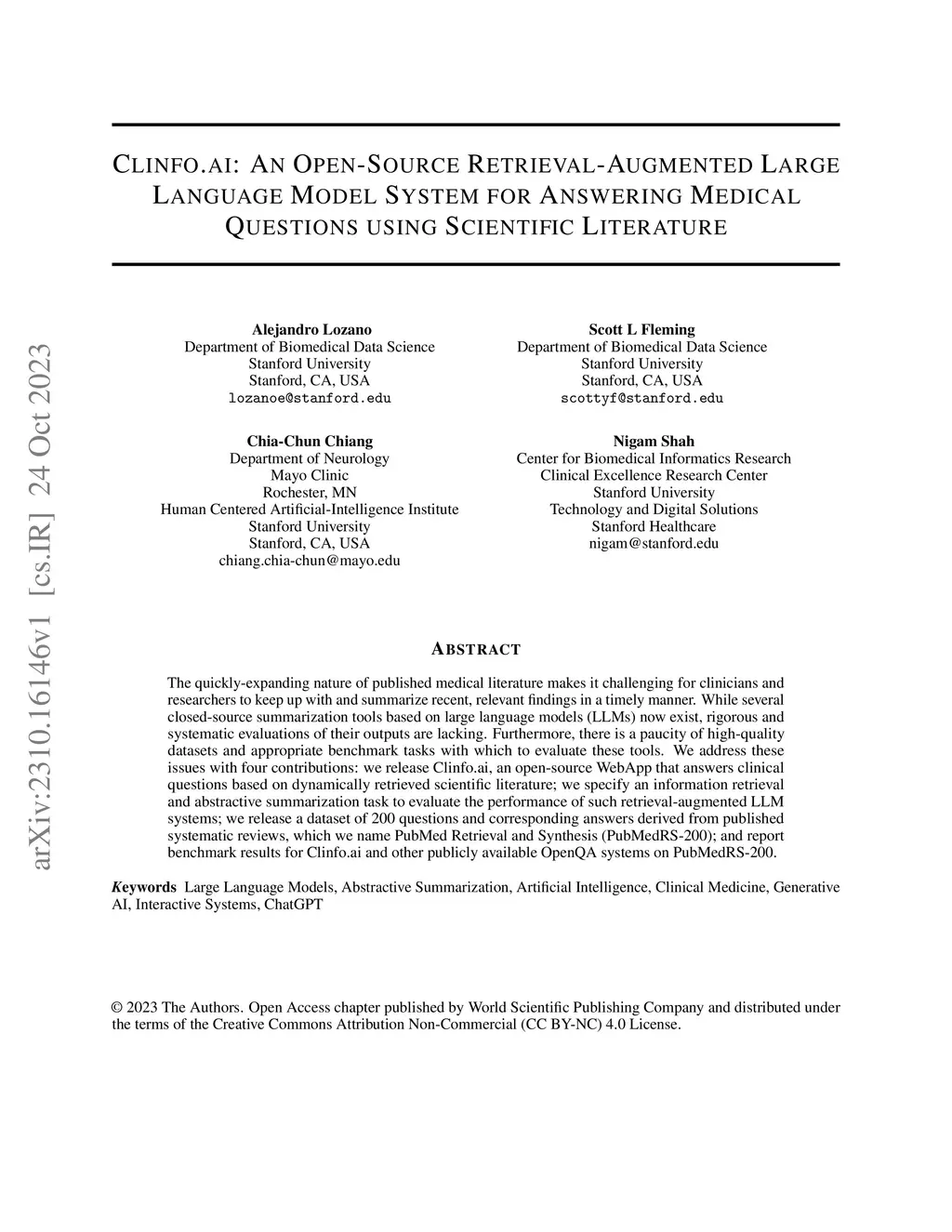 Clinfo.ai: An Open-Source Retrieval-Augmented Large Language Model