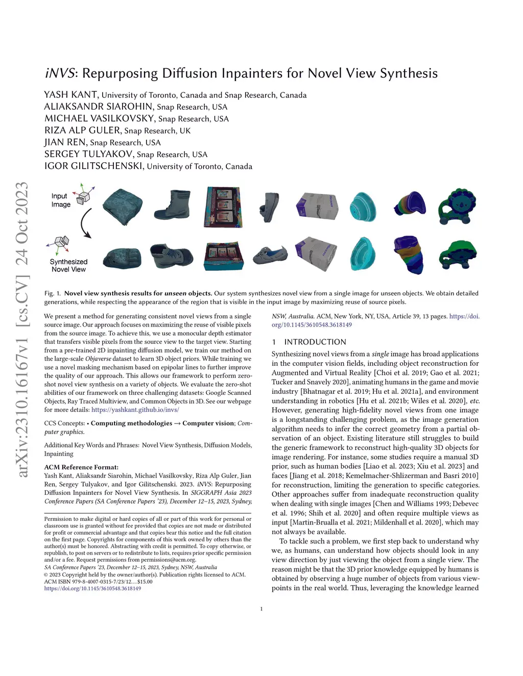 We present a method for generating consistent novel views from a single source image. Our approach focuses on maximizing the reuse of visible pixels from the source image. To achieve this, we use a monocular depth estimator that transfers visible pixels from the source view to the target view. Starting from a pre-trained 2D inpainting diffusion model, we train our method on the large-scale Objaverse dataset to learn 3D object priors. While training we use a novel masking mechanism based on epipolar lines to further improve the quality of our approach. This allows our framework to perform zero-shot novel view synthesis on a variety of objects. We evaluate the zero-shot abilities of our framework on three challenging datasets: Google Scanned Objects, Ray Traced Multiview, and Common Objects in 3D. See our webpage for more details: https://yashkant.github.io/invs/