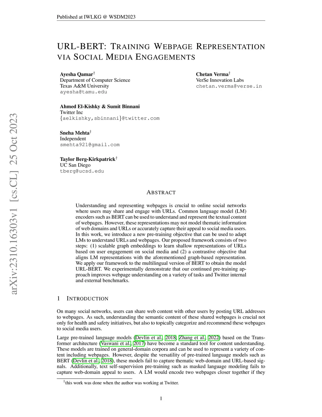 URL-BERT: Training Webpage Representations via Social Media Engagements