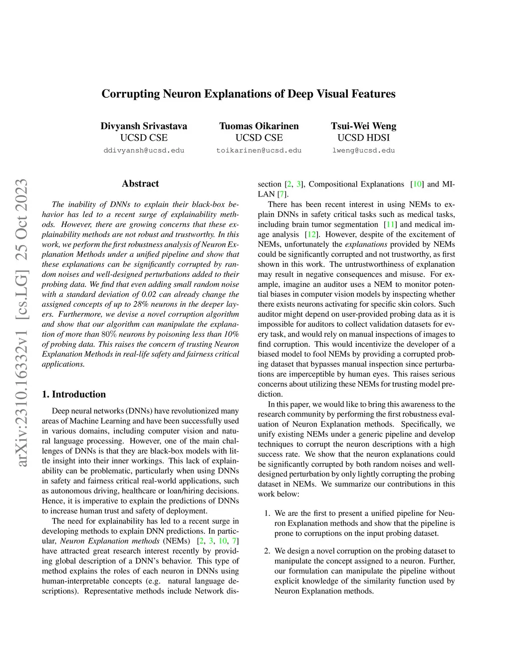 The inability of DNNs to explain their black-box behavior has led to a recent surge of explainability methods. However, there are growing concerns that these explainability methods are not robust and trustworthy. In this work, we perform the first robustness analysis of Neuron Explanation Methods under a unified pipeline and show that these explanations can be significantly corrupted by random noises and well-designed perturbations added to their probing data. We find that even adding small random noise with a standard deviation of 0.02 can already change the assigned concepts of up to 28% neurons in the deeper layers. Furthermore, we devise a novel corruption algorithm and show that our algorithm can manipulate the explanation of more than 80% neurons by poisoning less than 10% of probing data. This raises the concern of trusting Neuron Explanation Methods in real-life safety and fairness critical applications.