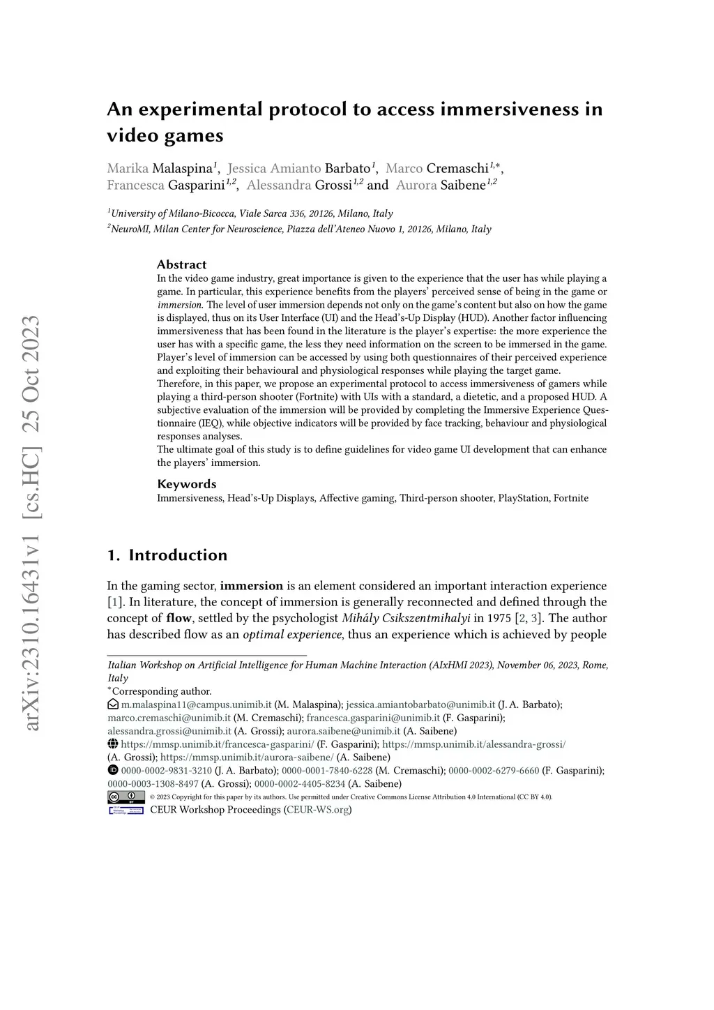 An experimental protocol to access immersiveness in video games