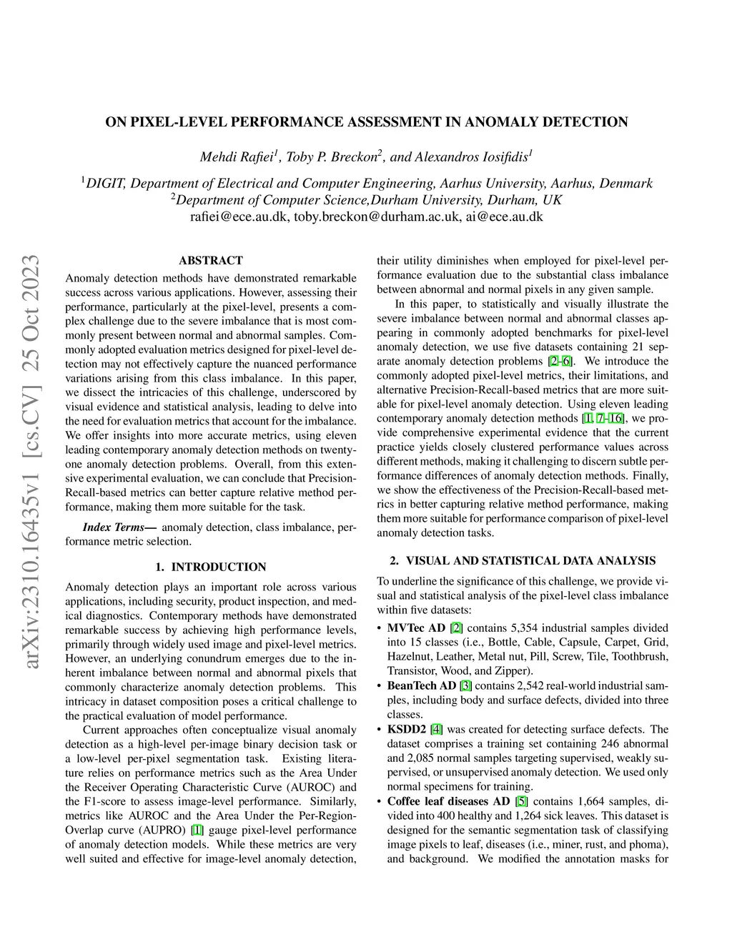 Anomaly detection methods have demonstrated remarkable success across various applications. However, assessing their performance, particularly at the pixel-level, presents a complex challenge due to the severe imbalance that is most commonly present between normal and abnormal samples. Commonly adopted evaluation metrics designed for pixel-level detection may not effectively capture the nuanced performance variations arising from this class imbalance. In this paper, we dissect the intricacies of this challenge, underscored by visual evidence and statistical analysis, leading to delve into the need for evaluation metrics that account for the imbalance. We offer insights into more accurate metrics, using eleven leading contemporary anomaly detection methods on twenty-one anomaly detection problems. Overall, from this extensive experimental evaluation, we can conclude that Precision-Recall-based metrics can better capture relative method performance, making them more suitable for the task.