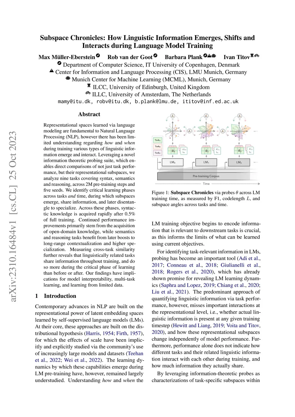 Subspace Chronicles: How Linguistic Information Emerges, Shifts and